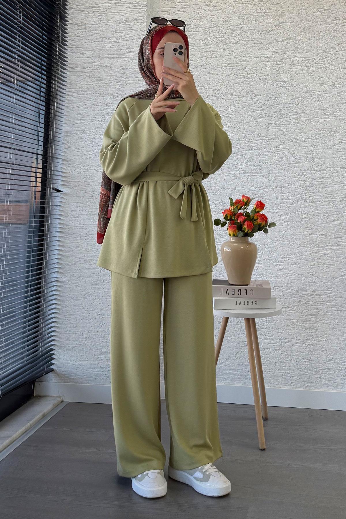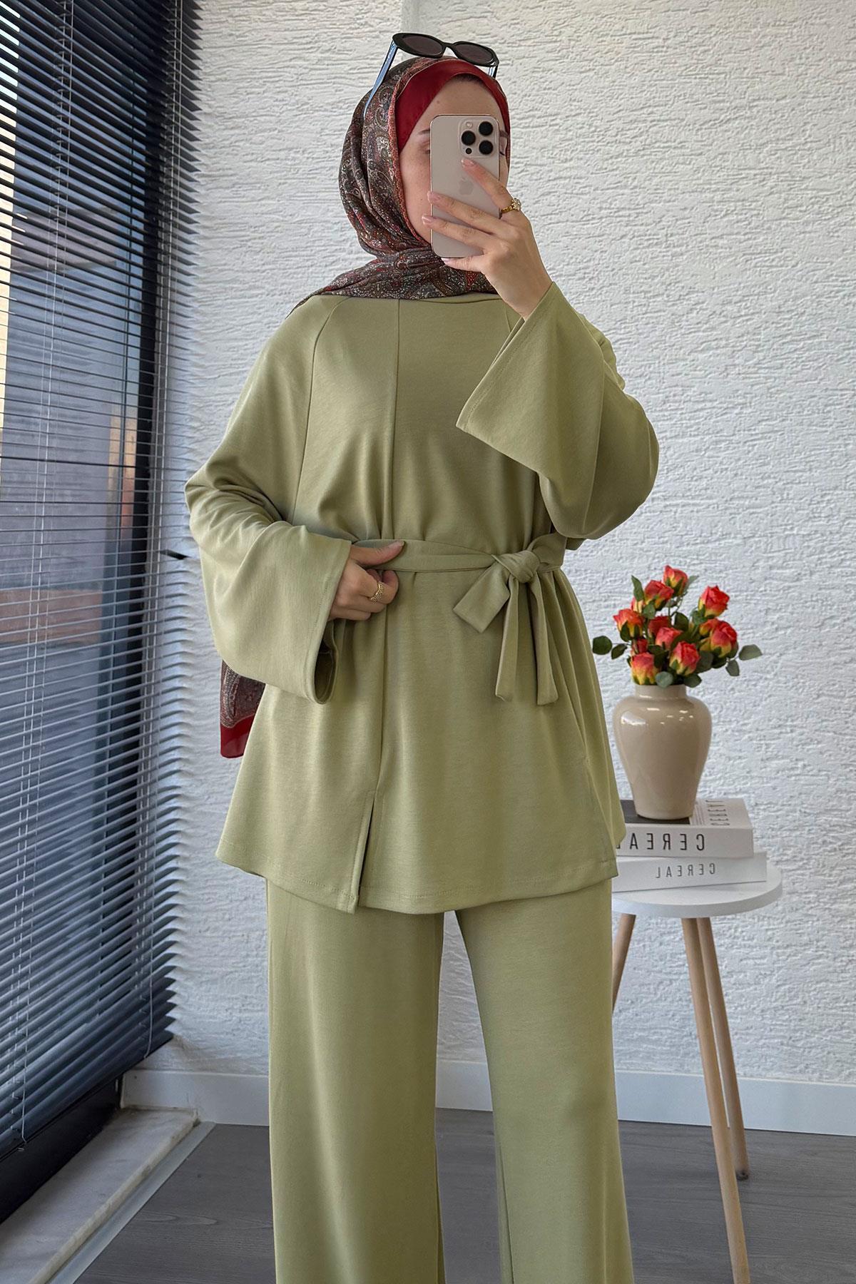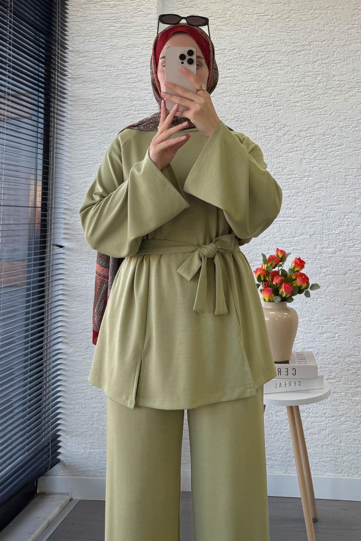 Önden Yırtmaç Detaylı İkili Takım - Yeşil Önden Yırtmaç Detaylı İkili Takım - Yeşil mlk15410 40-42
