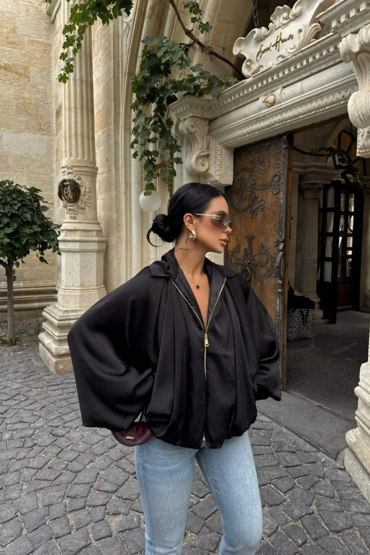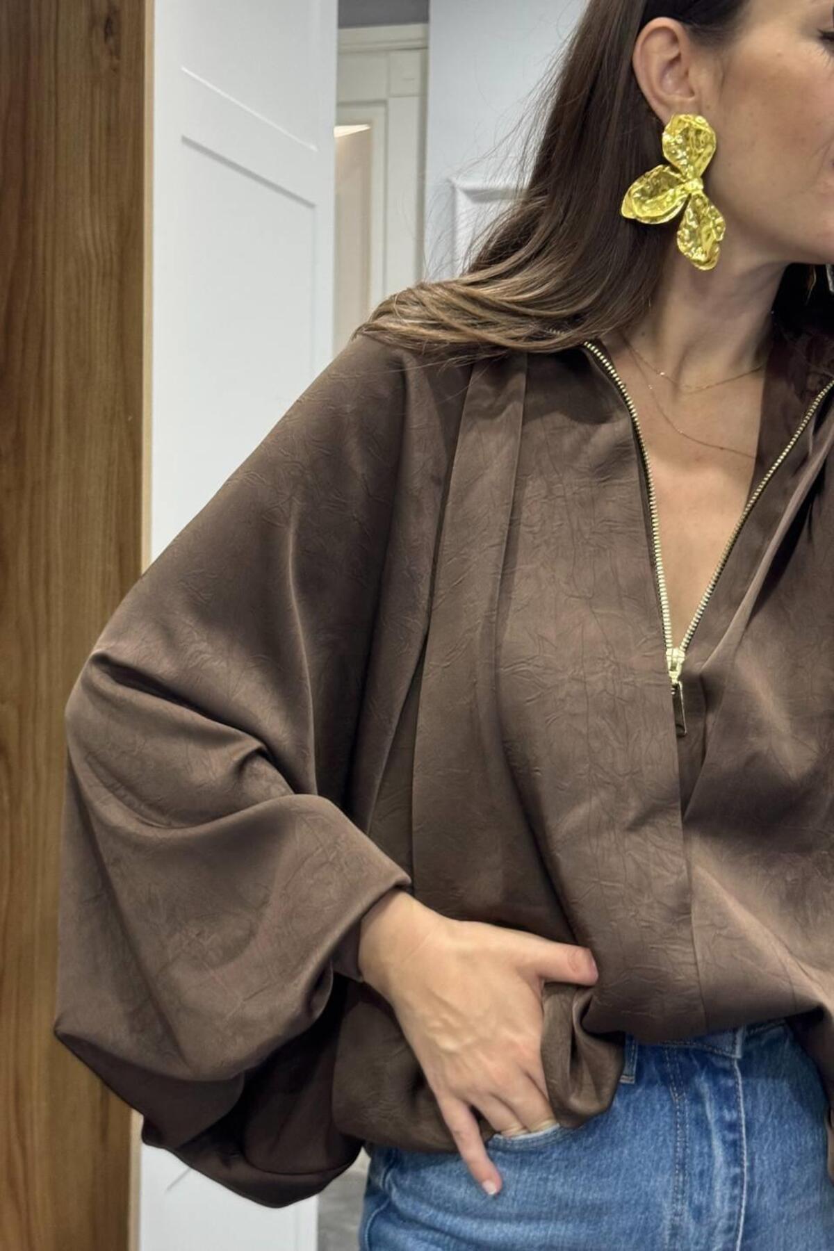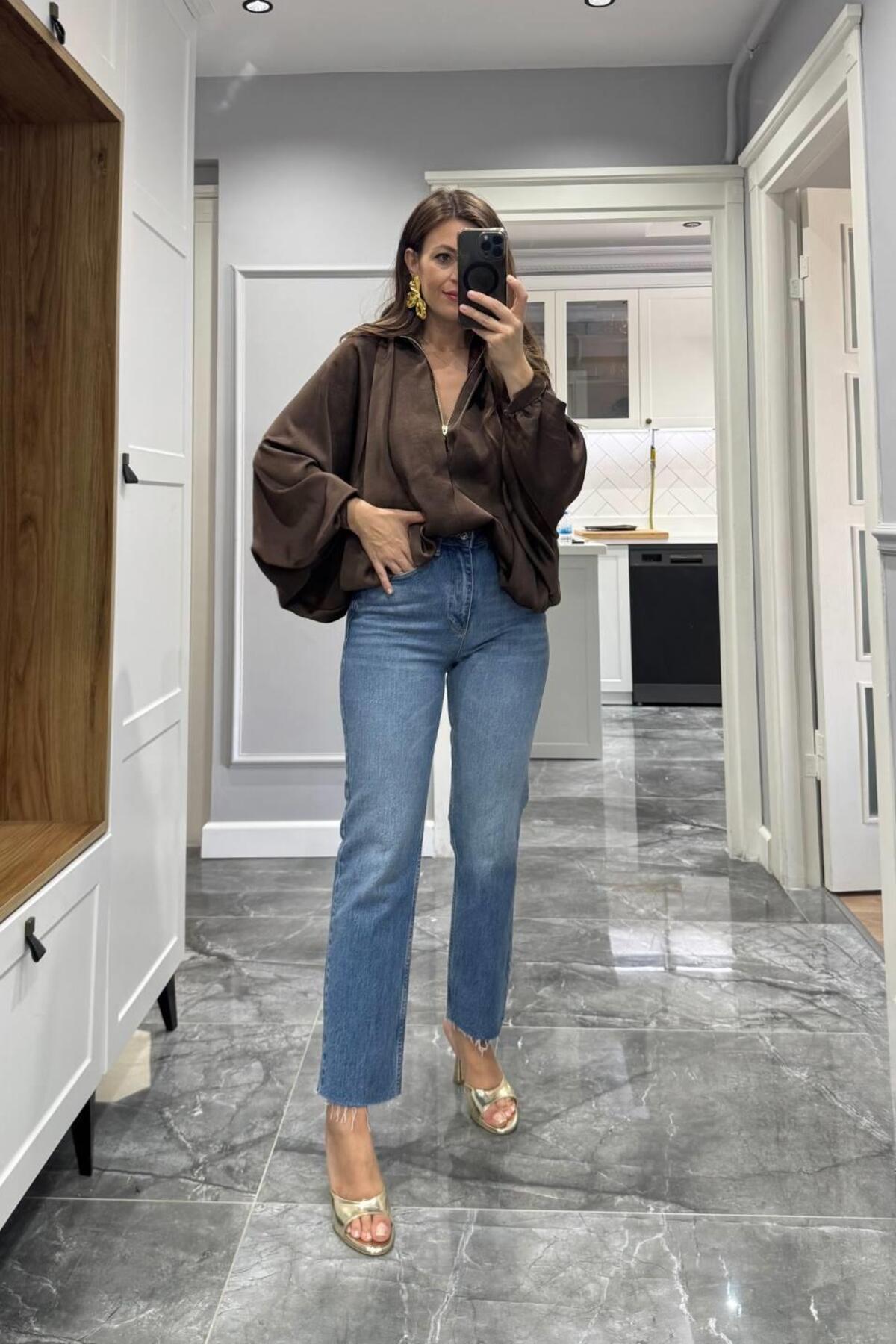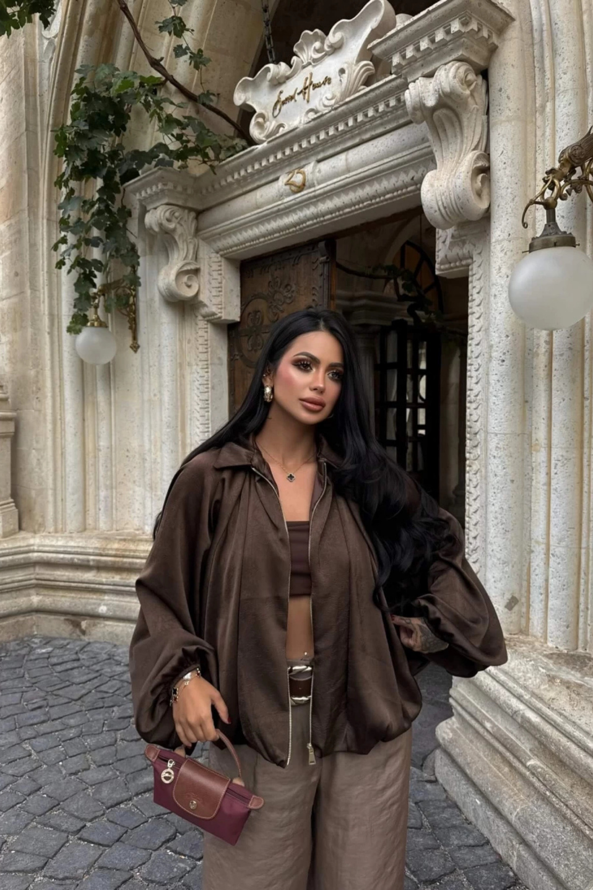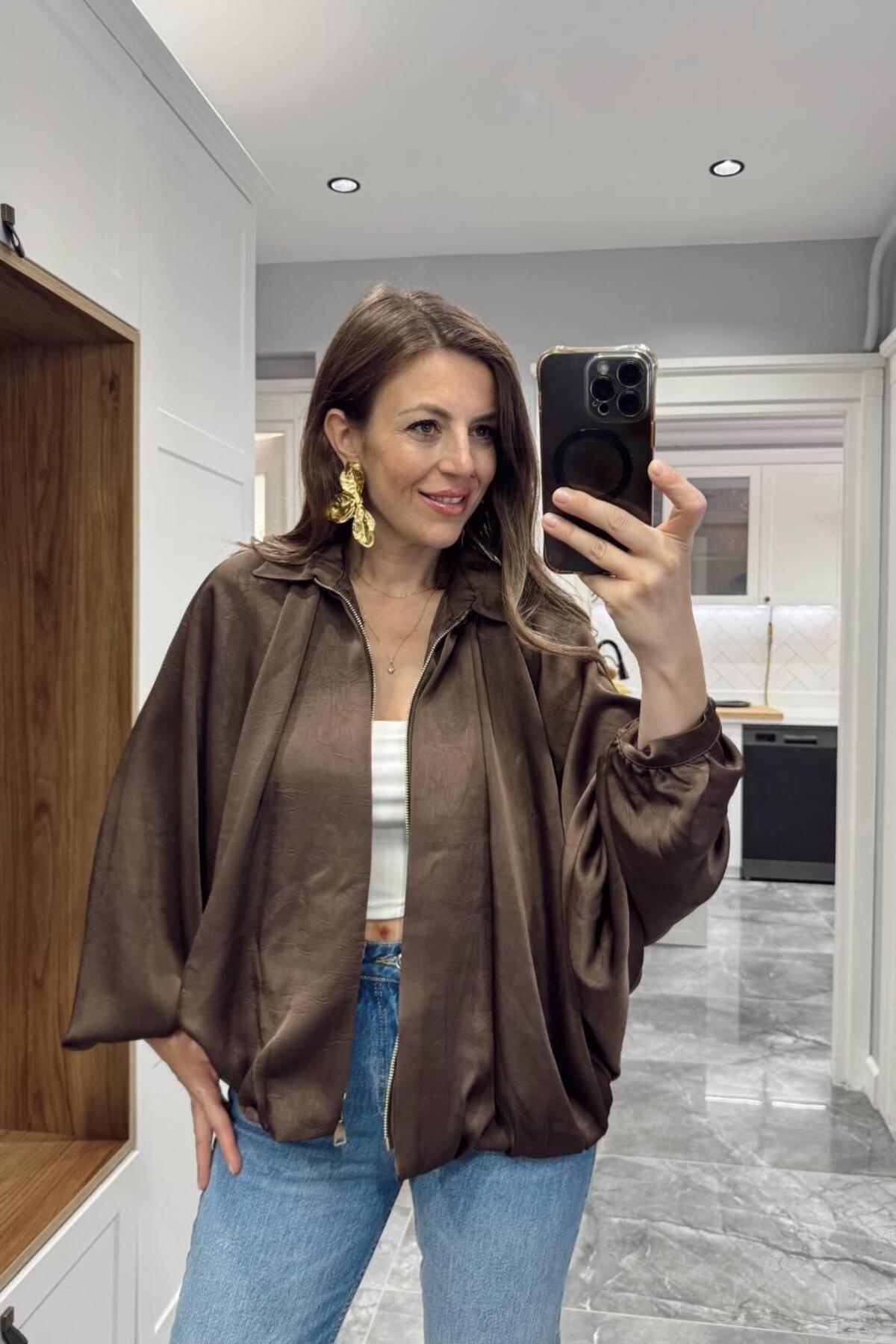 Bomber Saten Ceket Kahverengi Bomber Saten Ceket Kahverengi BA25SKDG001 Standart