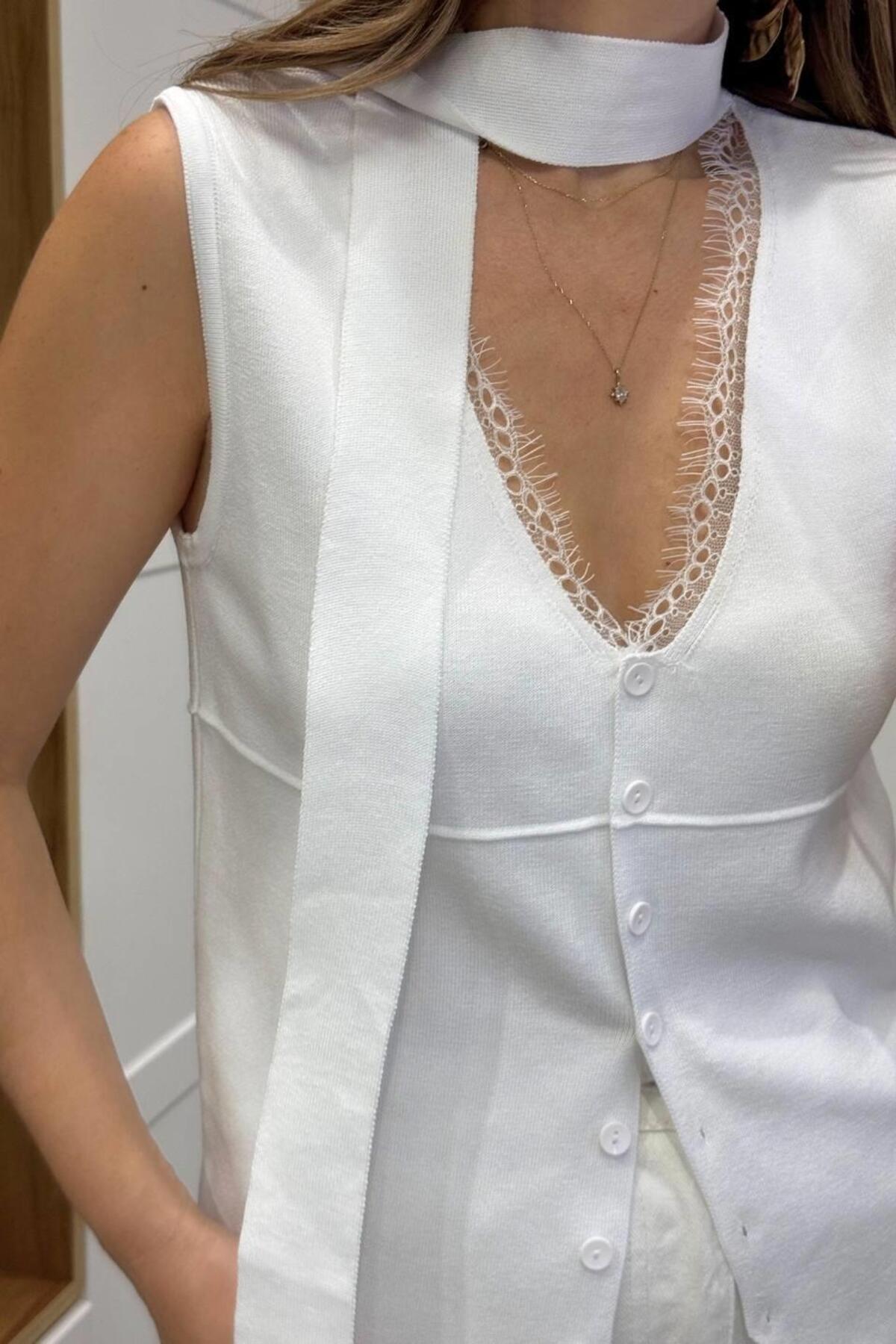 Lunara Dantel Detaylı Triko Yelek Beyaz Lunara Dantel Detaylı Triko Yelek Beyaz BA25SKUG007 Standart
