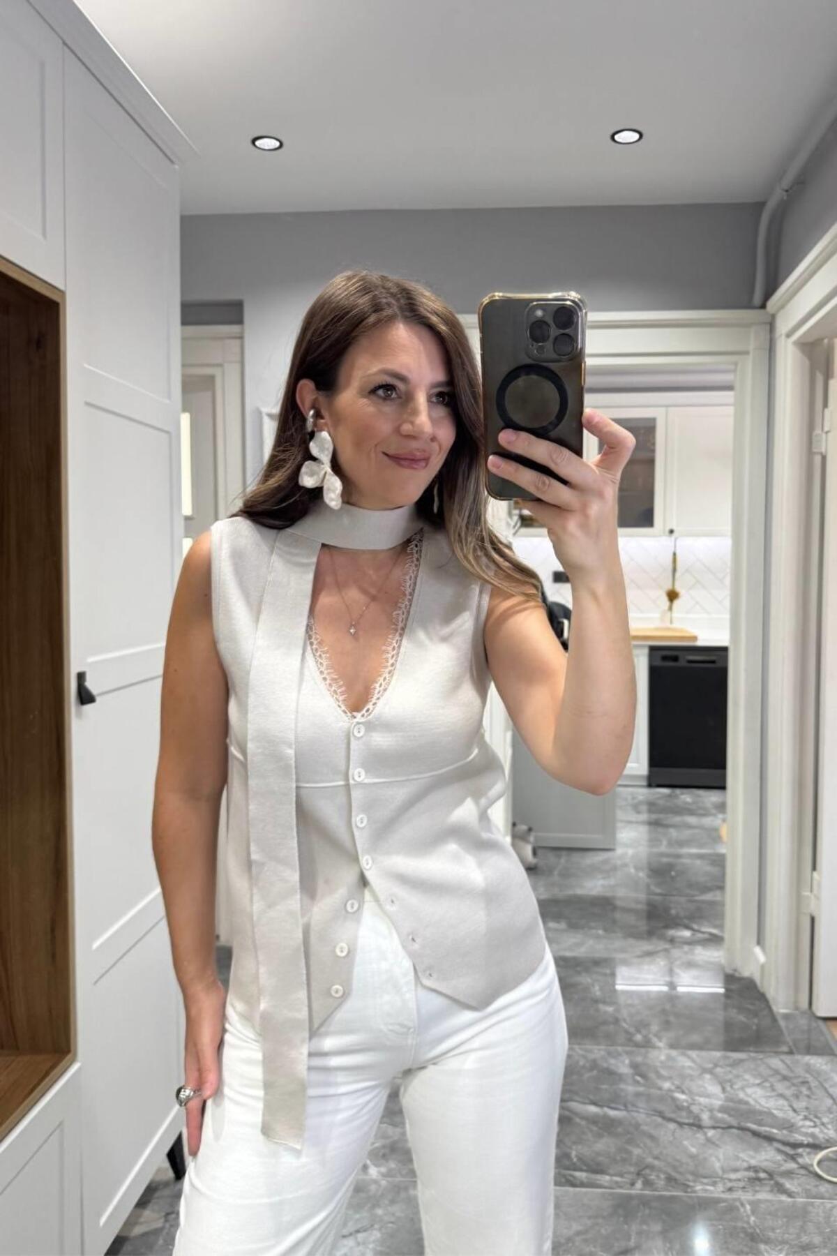 Lunara Dantel Detaylı Triko Yelek Taş Lunara Dantel Detaylı Triko Yelek Taş BA25SKUG007 Standart