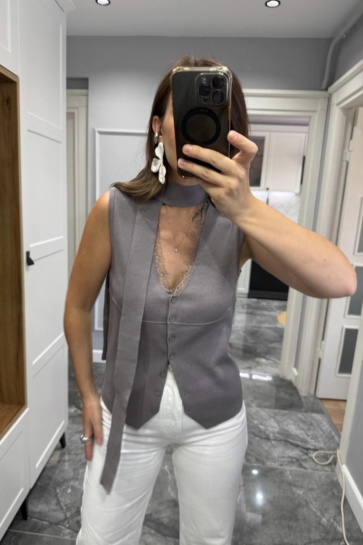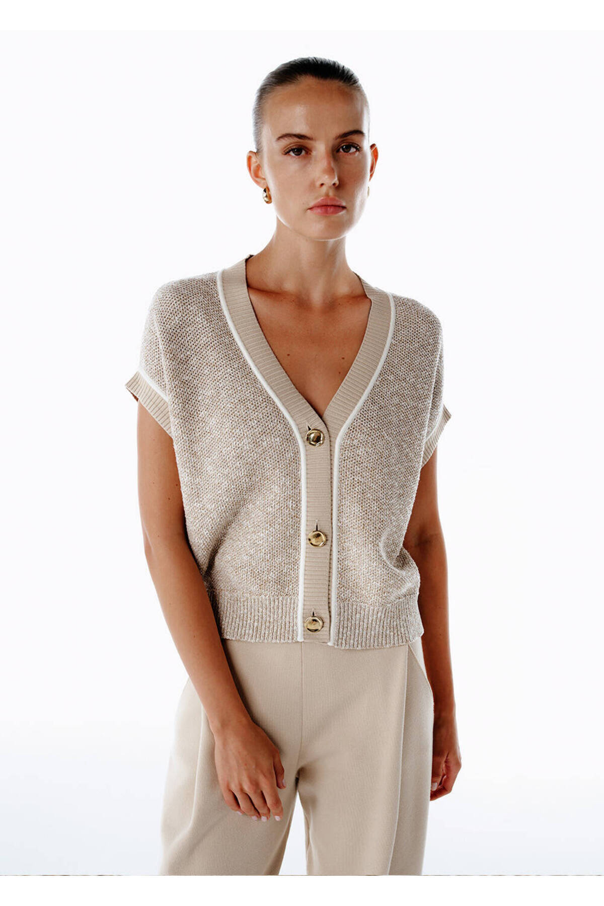 Lunara Dantel Detaylı Triko Yelek Vizon Lunara Dantel Detaylı Triko Yelek Vizon BA25SKUG007 Standart