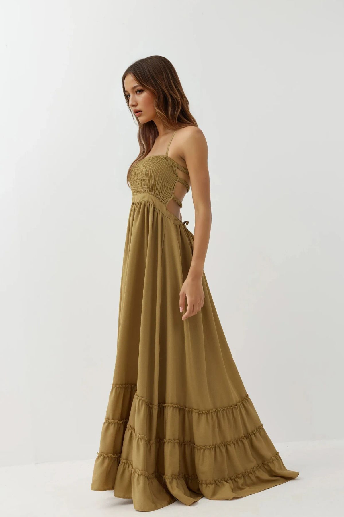 Kare Yaka Dokulu Maxi Elbise Kare Yaka Dokulu Maxi Elbise M8D0XXFG XL