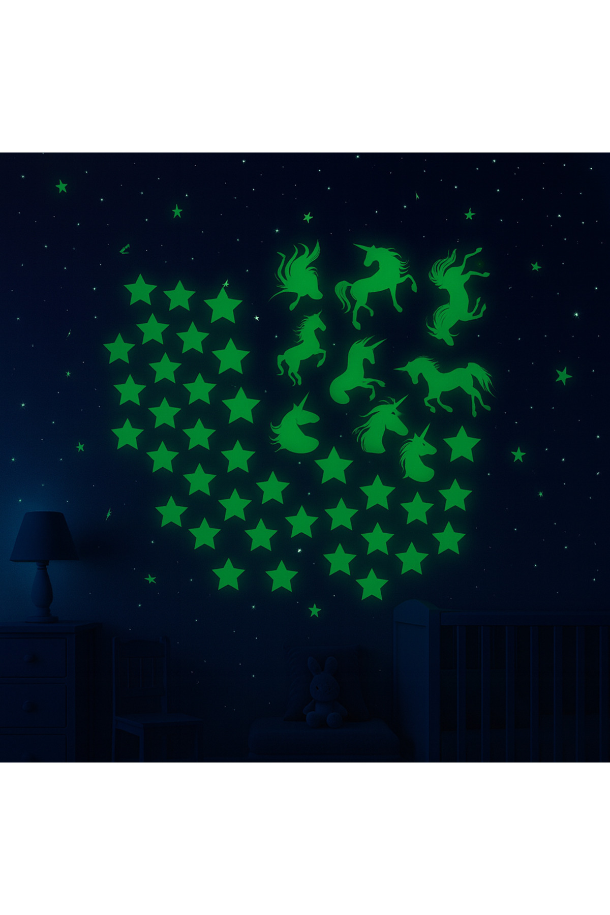 Karanlıkta Parlayan Unicorn Atlar ve Yıldızlar Tavan Oda Duvar Süsü 50 Adet Karanlıkta Parlayan Unicorn Atlar ve Yıldızlar Tavan Oda Duvar Süsü 50 Adet unicorn1 30 x 35