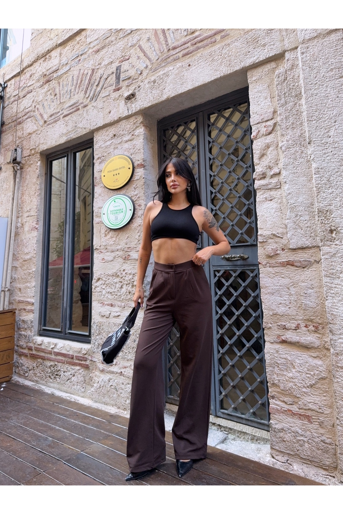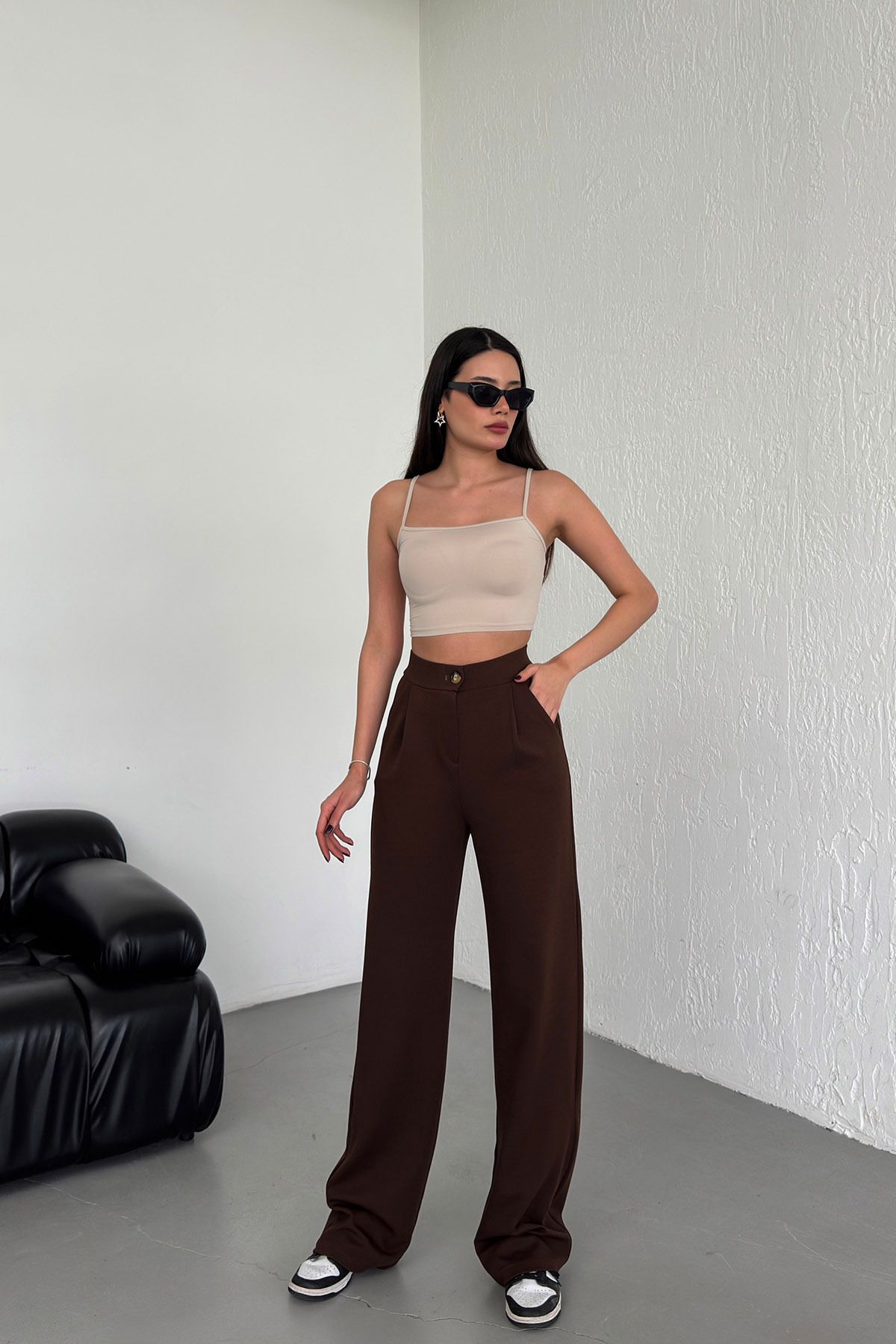 Kadın Yüksek Bel Tek Düğmeli Palazzo Pantolon Kadın Yüksek Bel Tek Düğmeli Palazzo Pantolon ASN1013 L