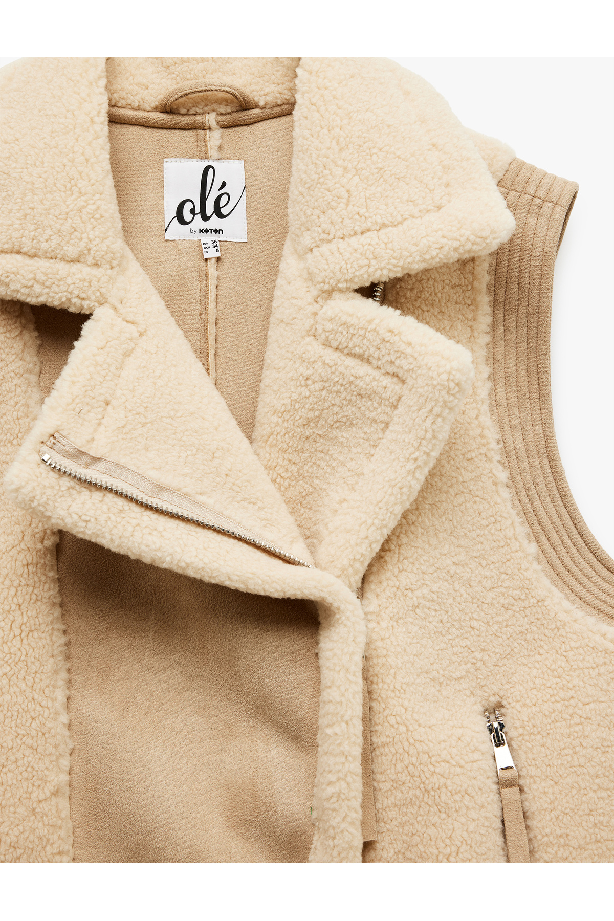 Suni Süet Detaylı Kolsuz Fermuarlı Cepli Peluş Yelek Suni Süet Detaylı Kolsuz Fermuarlı Cepli Peluş Yelek 6WAL20015IW 40