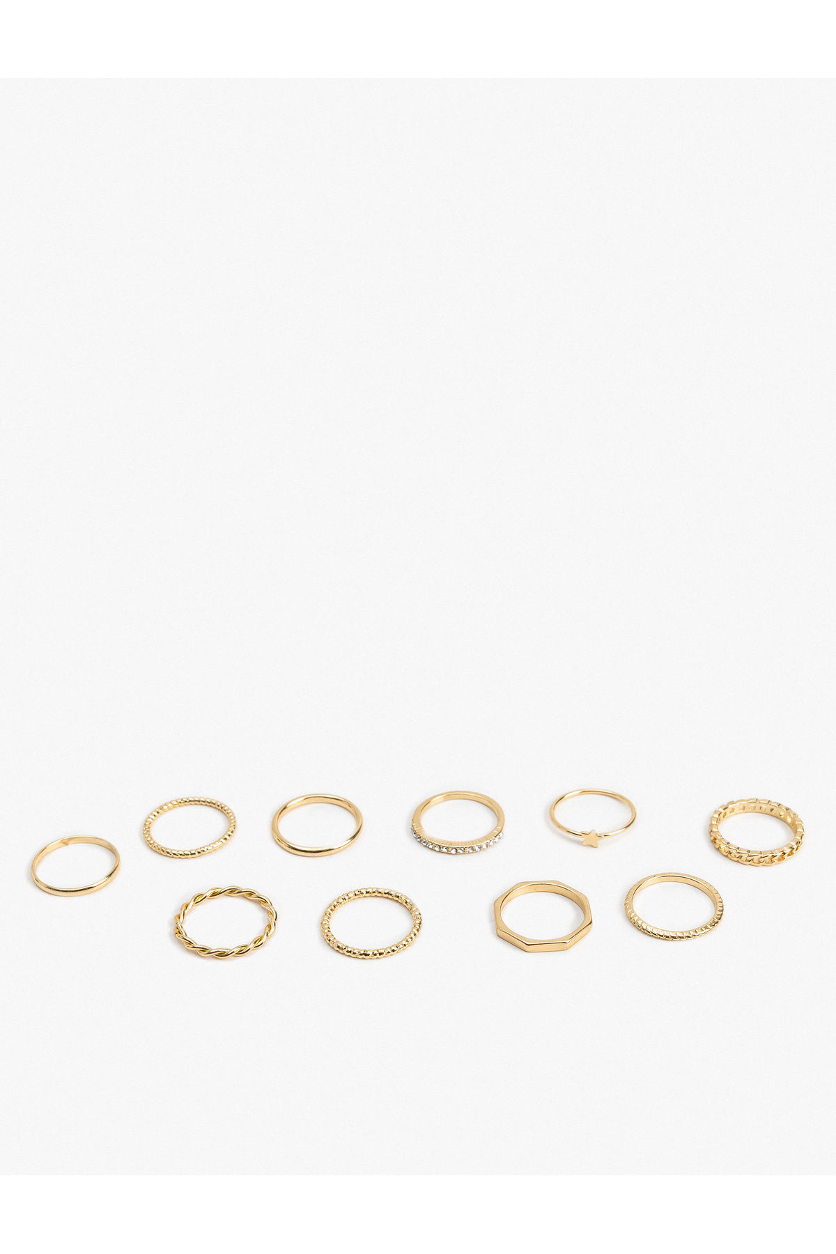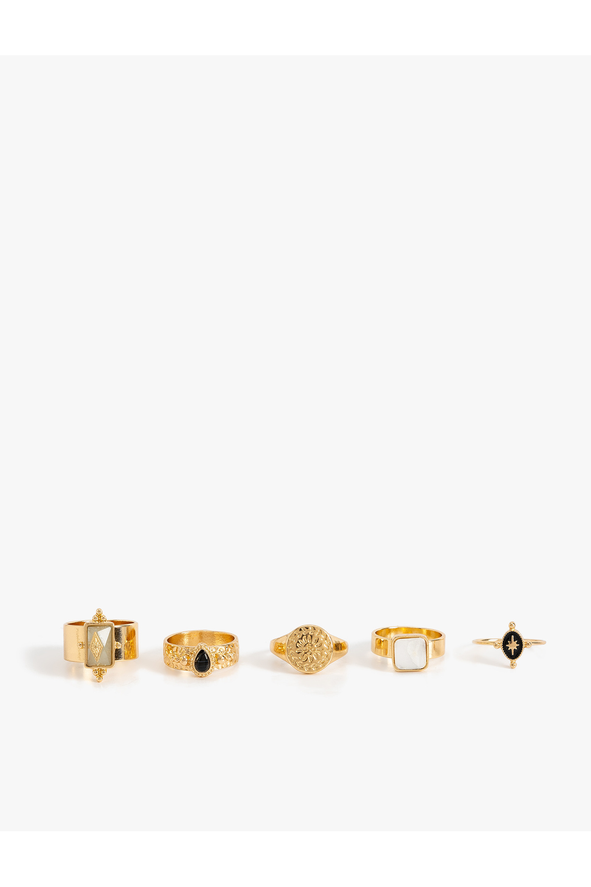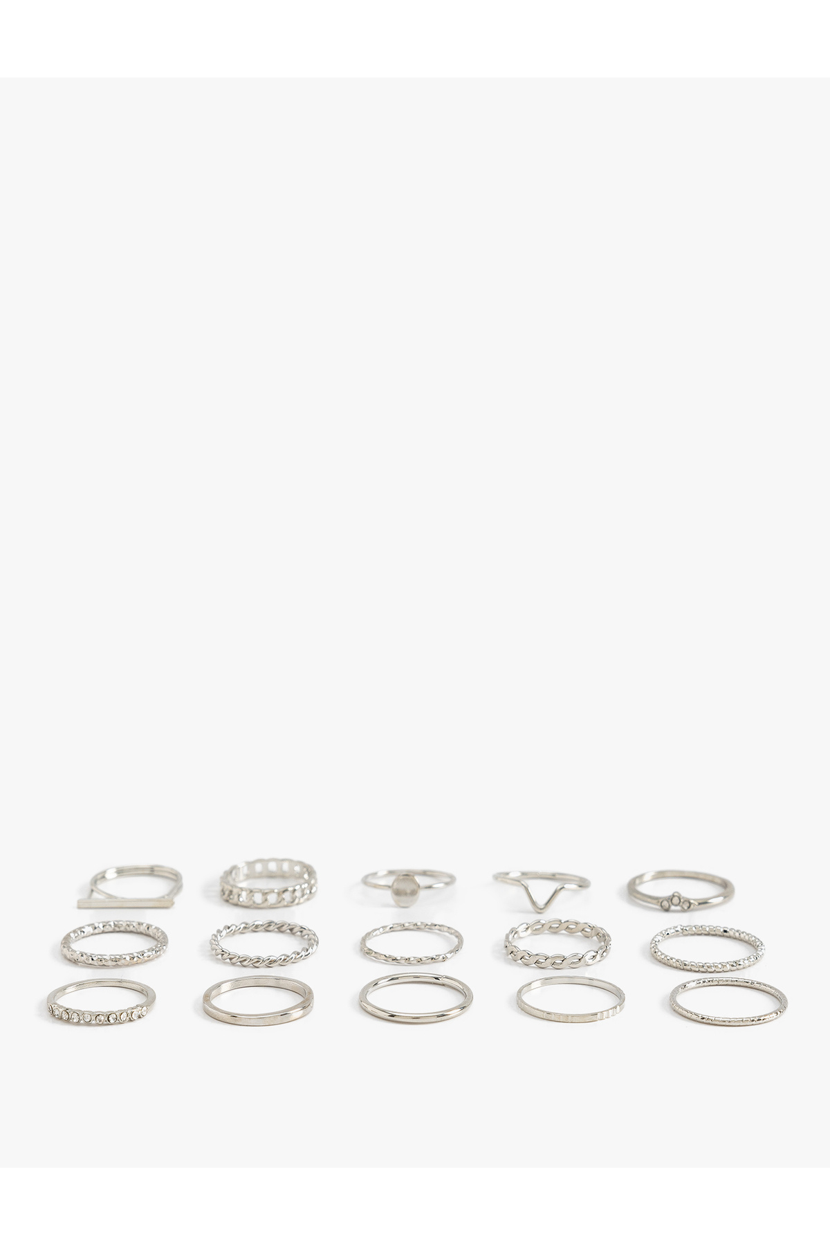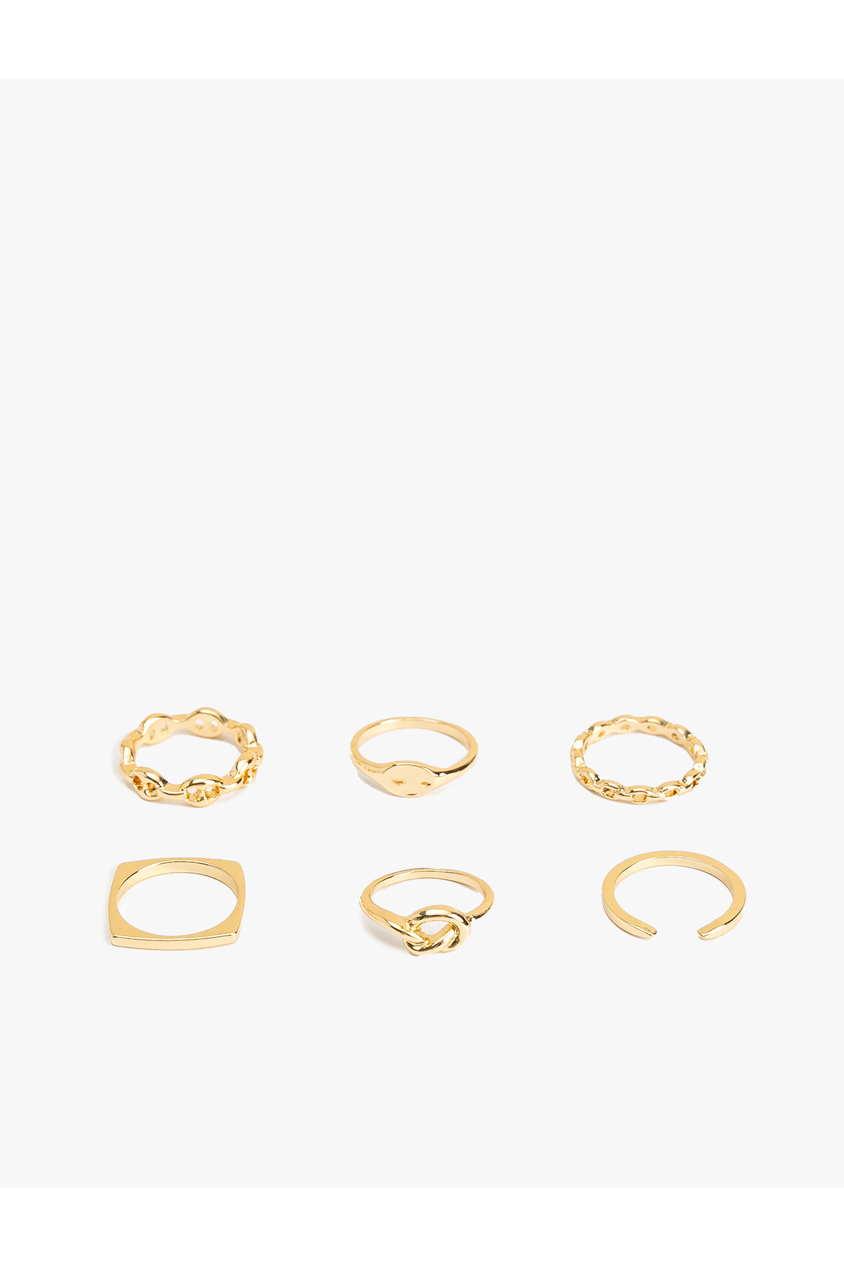 Kalpli Burgu Çelik Karışımlı 6'lı Yüzük Seti Kalpli Burgu Çelik Karışımlı 6'lı Yüzük Seti 6WAK70608AA L