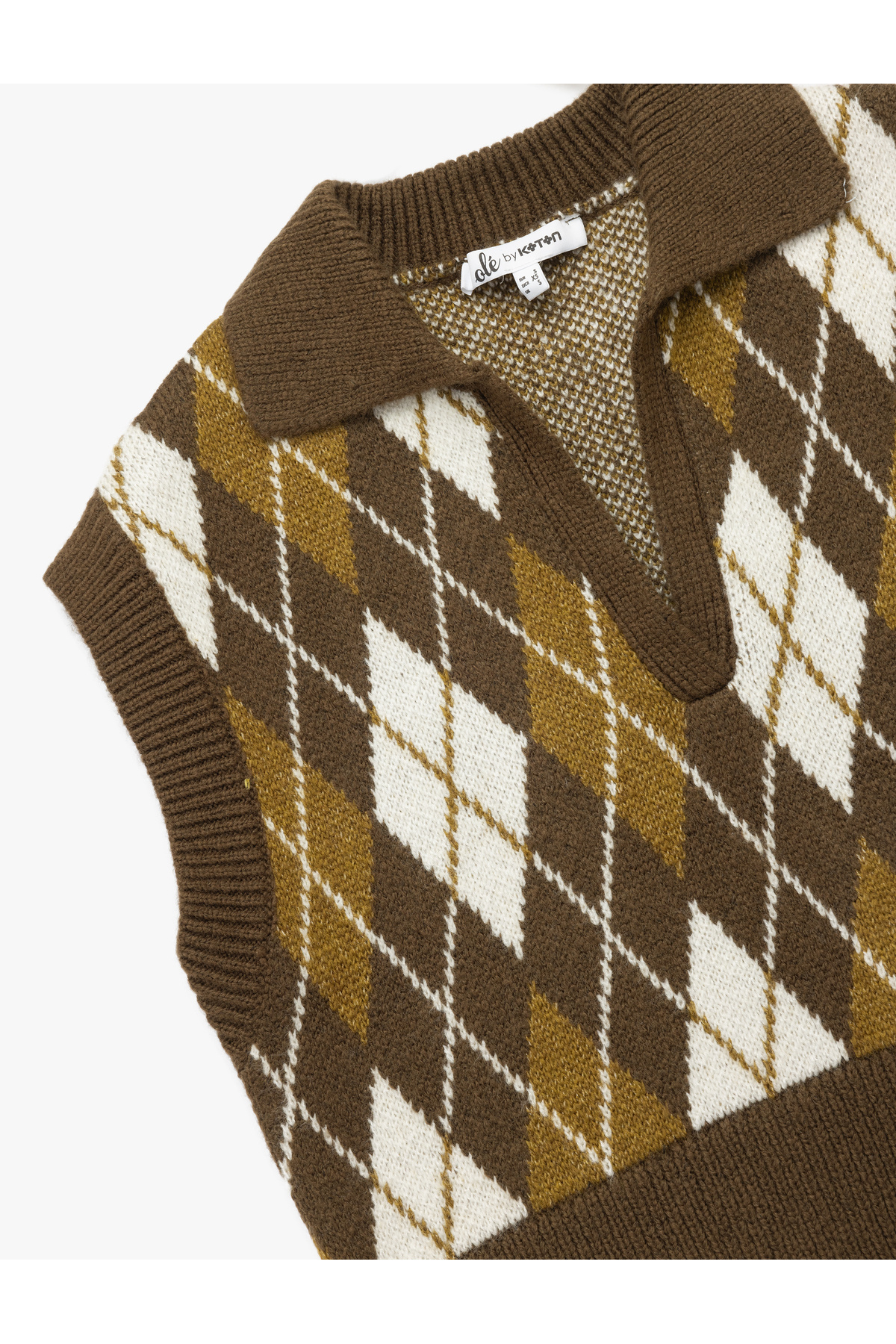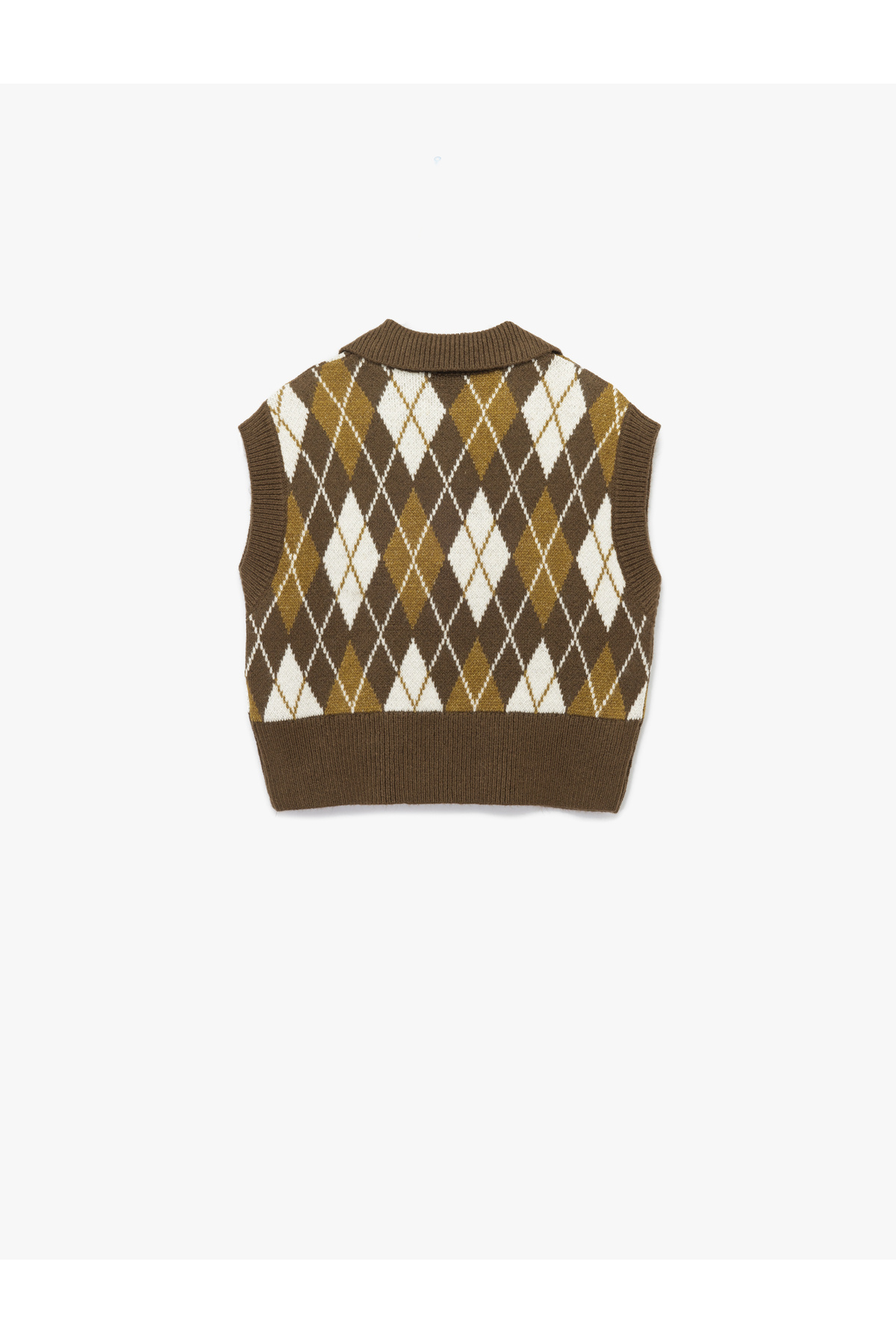Kolsuz Baklava Desenli Jakarlı Polo Yaka Triko Süveter Kolsuz Baklava Desenli Jakarlı Polo Yaka Triko Süveter 6WAL20002IT S