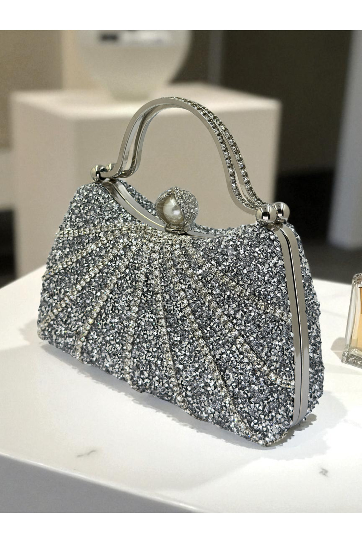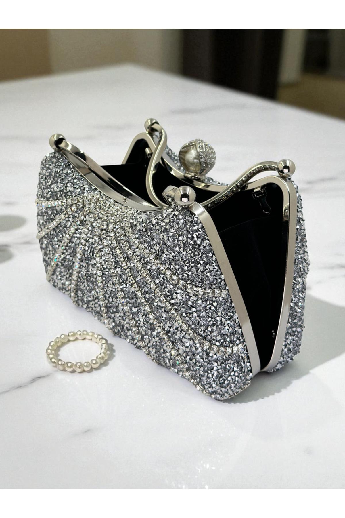 Gümüş Gri Lame Renk Taşlı Gümüş Detaylı Zincir Askılı Kadın Abiye Mezuniyet Kına Nişan Balo Çantası Gümüş Gri Lame Renk Taşlı Gümüş Detaylı Zincir Askılı Kadın Abiye Mezuniyet Kına Nişan Balo Çantası RV01 تک سایز