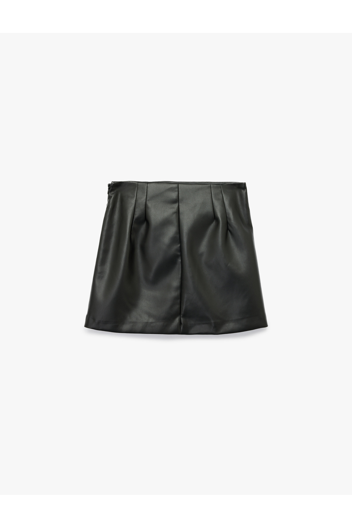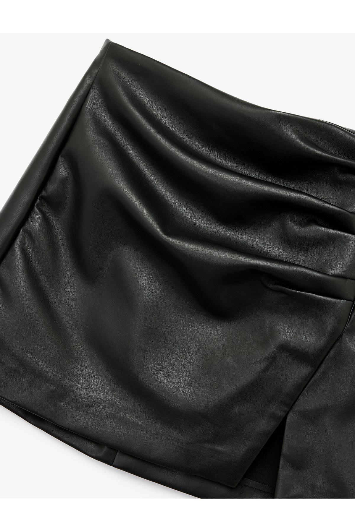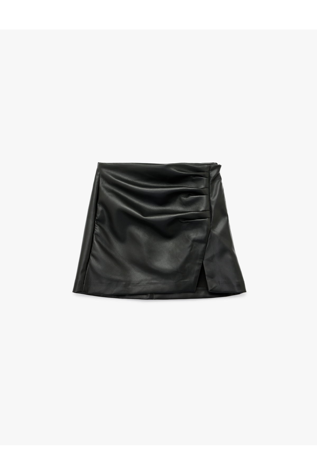 Drapeli Yırtmaçlı Suni Deri Mini Etek Drapeli Yırtmaçlı Suni Deri Mini Etek 6WAK70007EW 42