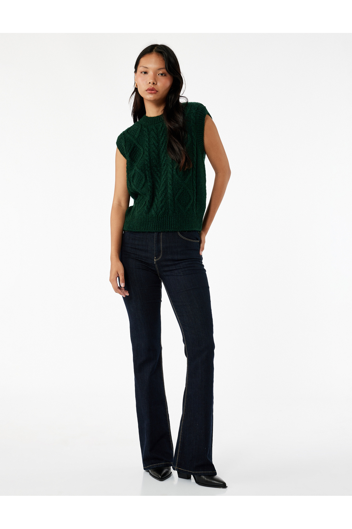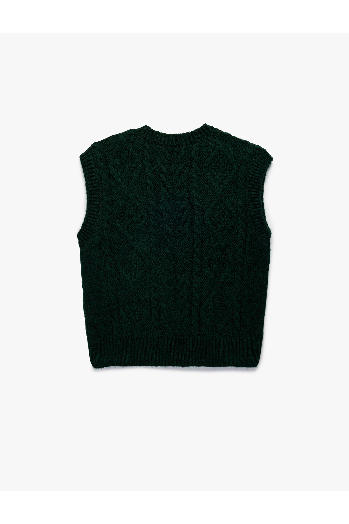 Saç Örgüsü Dokulu Kolsuz Bisiklet Yaka Triko Süveter Saç Örgüsü Dokulu Kolsuz Bisiklet Yaka Triko Süveter 6WAL20004HT L