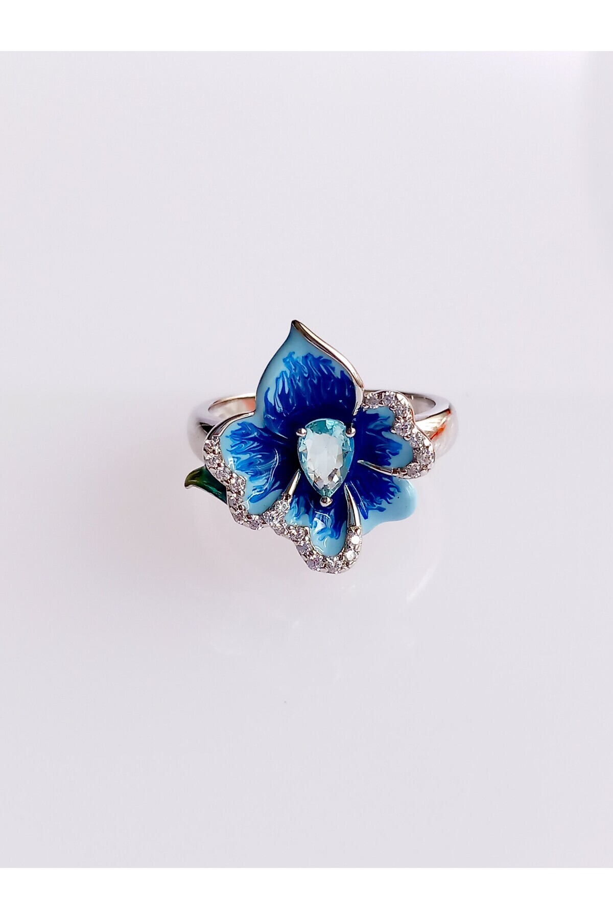 18 Ayar Altın Kaplama Mavi Lotus Çiçek Tasarım Kakma Emaye Boyama Kadın Gümüş Yüzük 18 Ayar Altın Kaplama Mavi Lotus Çiçek Tasarım Kakma Emaye Boyama Kadın Gümüş Yüzük Y-194 19