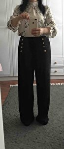 Scuba Kumaş Metal Düğme Aksesuarlı Yüksek Bel Palazzo Pantolon Scuba Kumaş Metal Düğme Aksesuarlı Yüksek Bel Palazzo Pantolon 6WAK40014EK 2XL