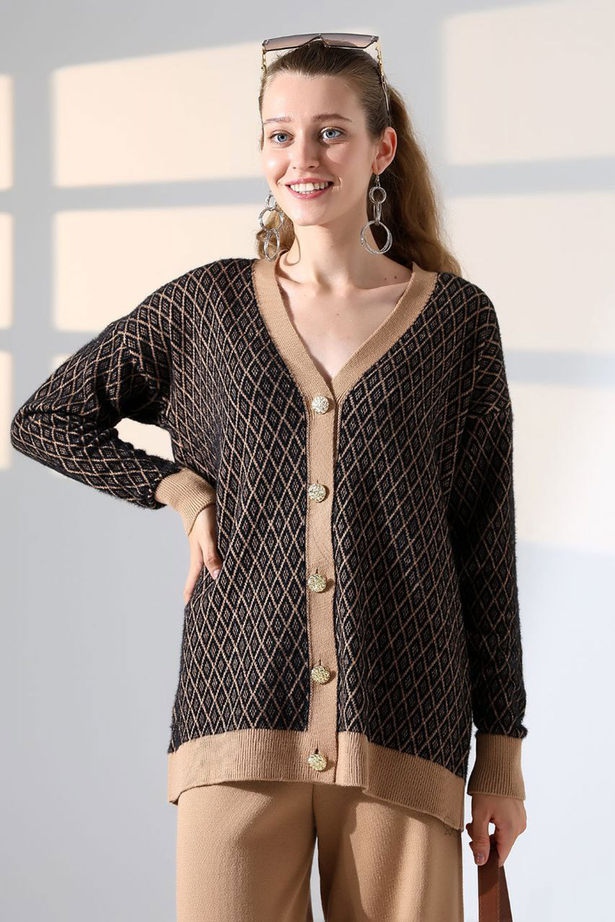Kadın Bisküvi V Yaka Düğmeli Hırka Ve Pantolon Alt Üst Triko Takım BCES-252011 Kadın Bisküvi V Yaka Düğmeli Hırka Ve Pantolon Alt Üst Triko Takım BCES-252011 Standart