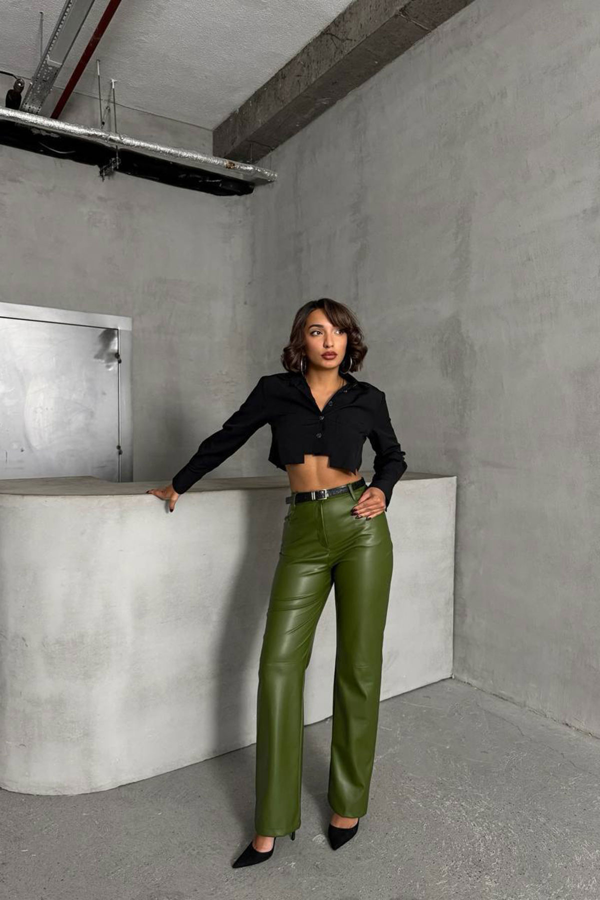 Kadın Yağ Yeşili Çift Cepli Fit Kesim Suni Deri Pantolon BCHN-25267542 Kadın Yağ Yeşili Çift Cepli Fit Kesim Suni Deri Pantolon BCHN-25267542 42