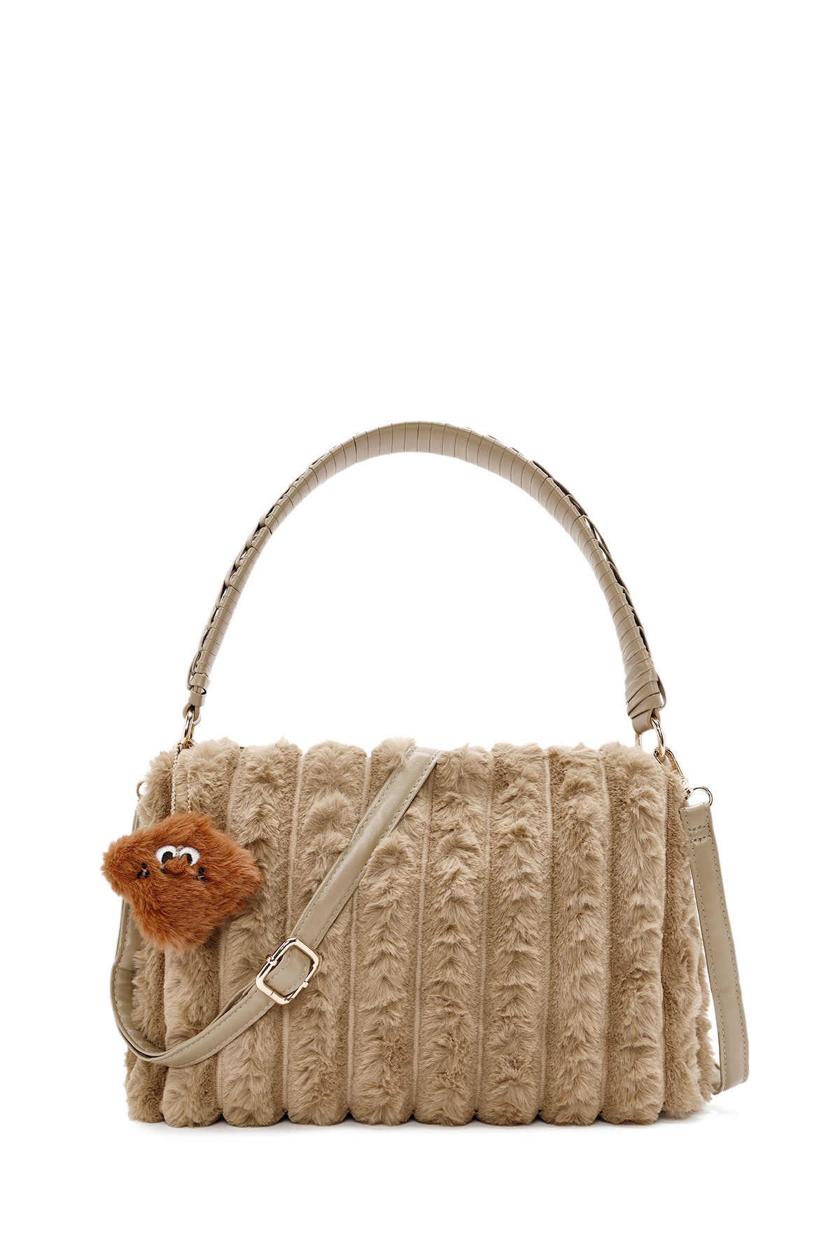 Kadın Krem Uzun Askılı Aksesuar Detaylı Peluş Mini Kol Çantası 25WBD2459PH Kadın Krem Uzun Askılı Aksesuar Detaylı Peluş Mini Kol Çantası 25WBD2459PH Standart