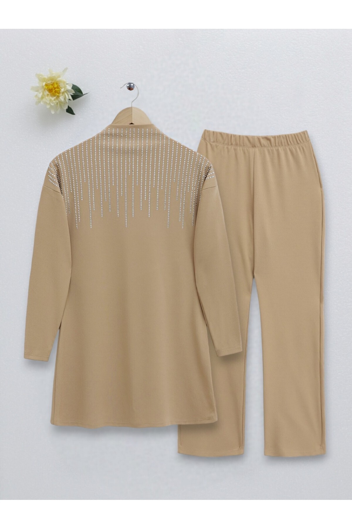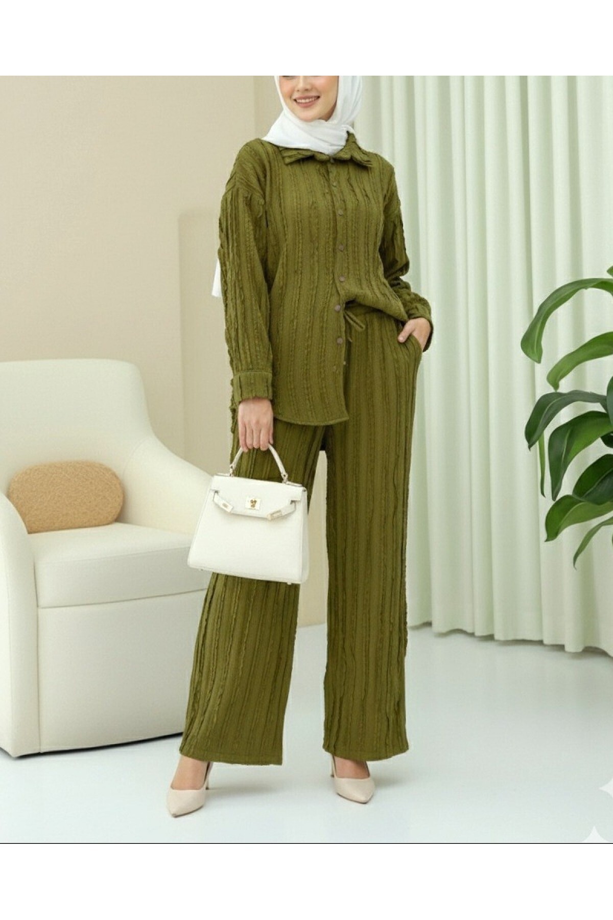 Dokulu Düğmeli Dikey Şeritli Pantolon Gömlek Takım -Kahve Dokulu Düğmeli Dikey Şeritli Pantolon Gömlek Takım -Kahve TY398-4023 42