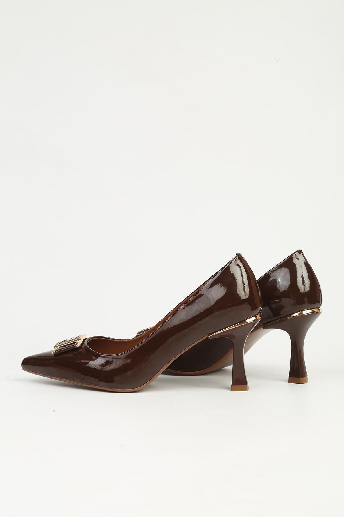 Kahve Rugan Topuklu Ayakkabı PC-54966 Kahve Rugan Topuklu Ayakkabı PC-54966 40
