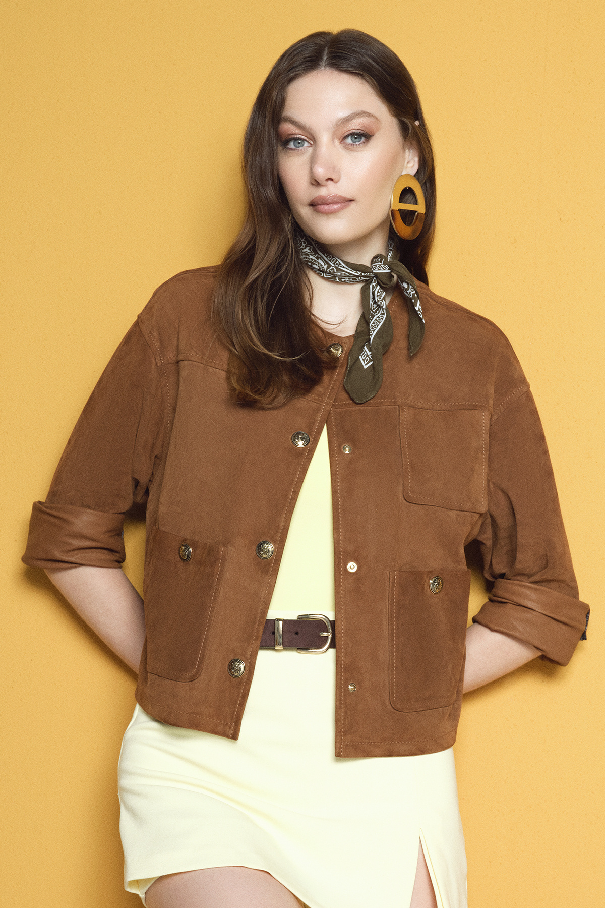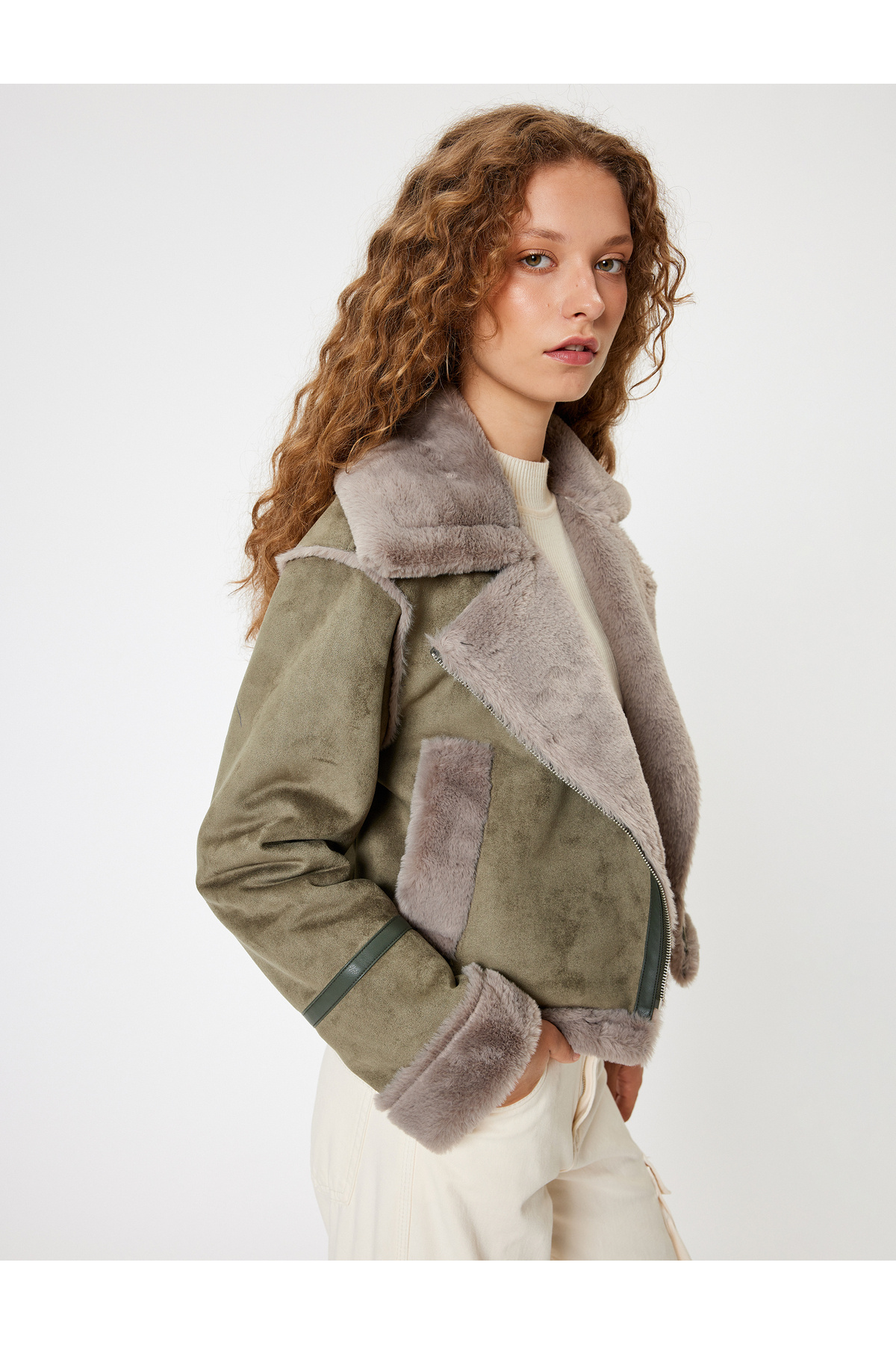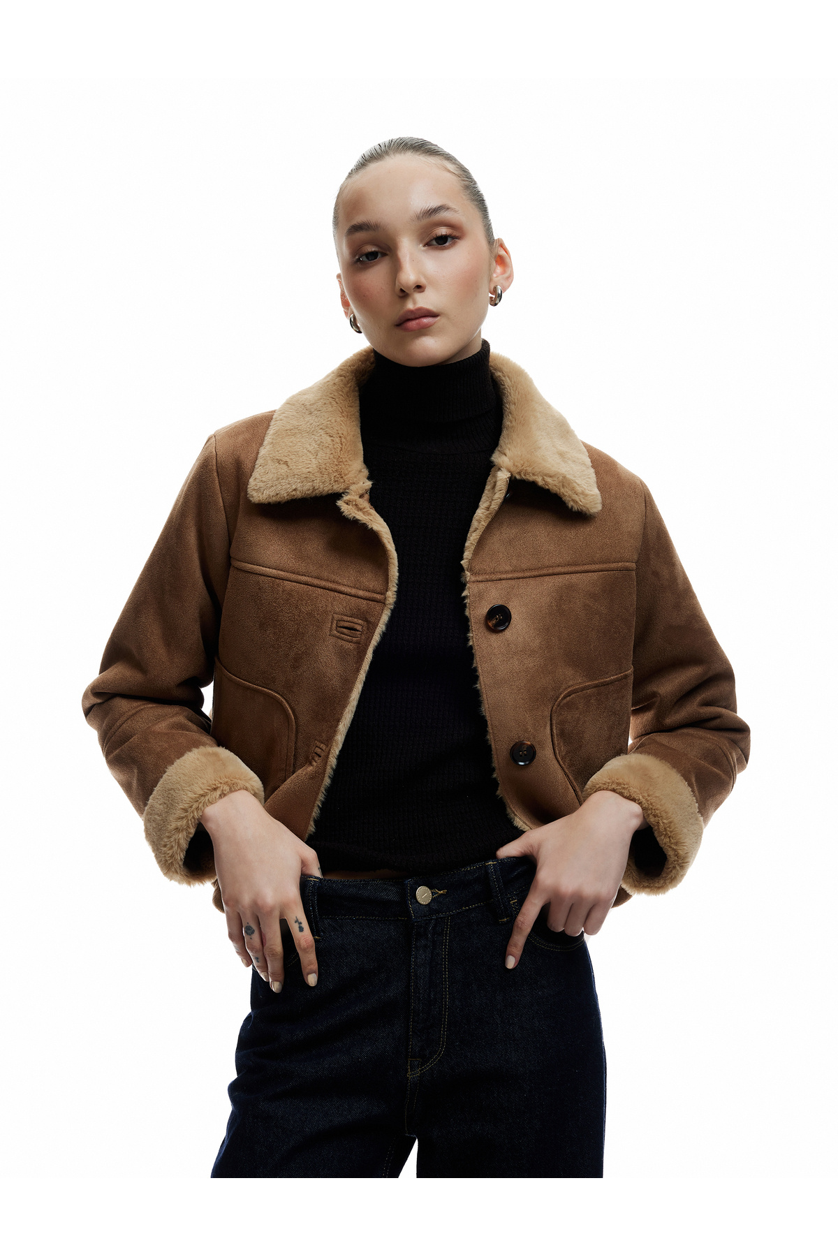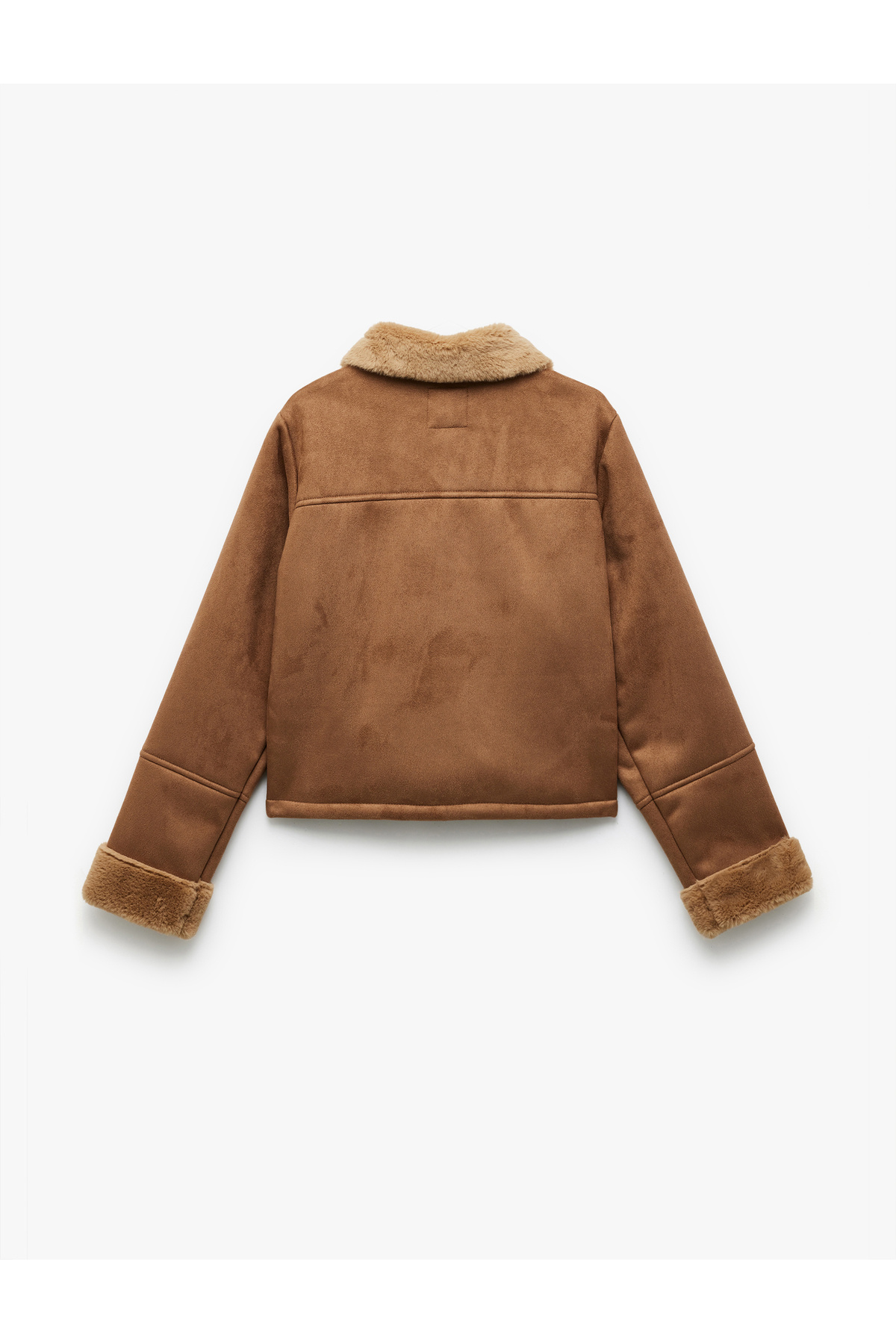 Suni Kürk Yaka Uzun Kollu Düğmeli Süet Görünümlü Ceket Suni Kürk Yaka Uzun Kollu Düğmeli Süet Görünümlü Ceket 6WAL20013IW 40