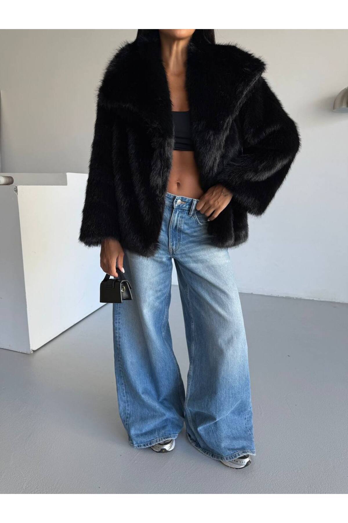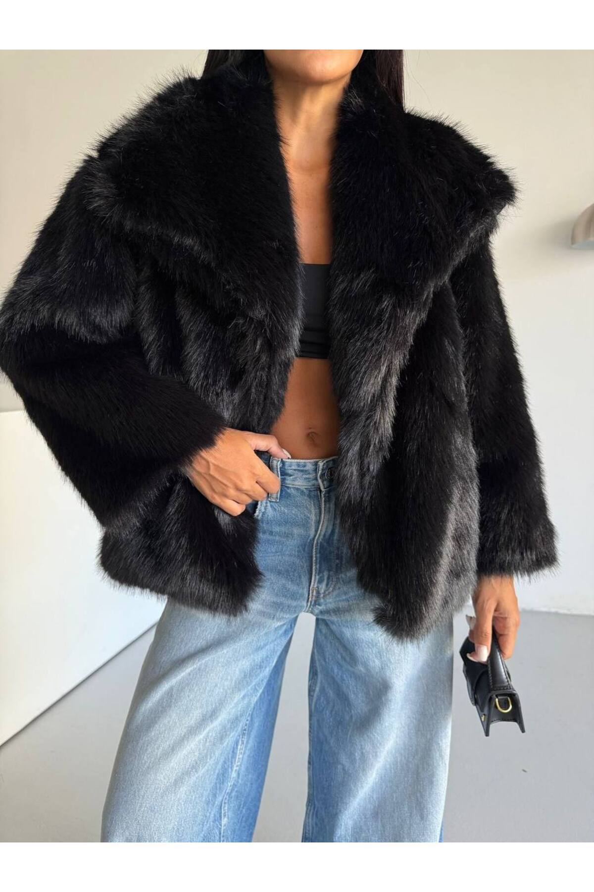 Kadın Geniş Yaka Cepli Kürk Ceket Kadın Geniş Yaka Cepli Kürk Ceket AHZ-37 L