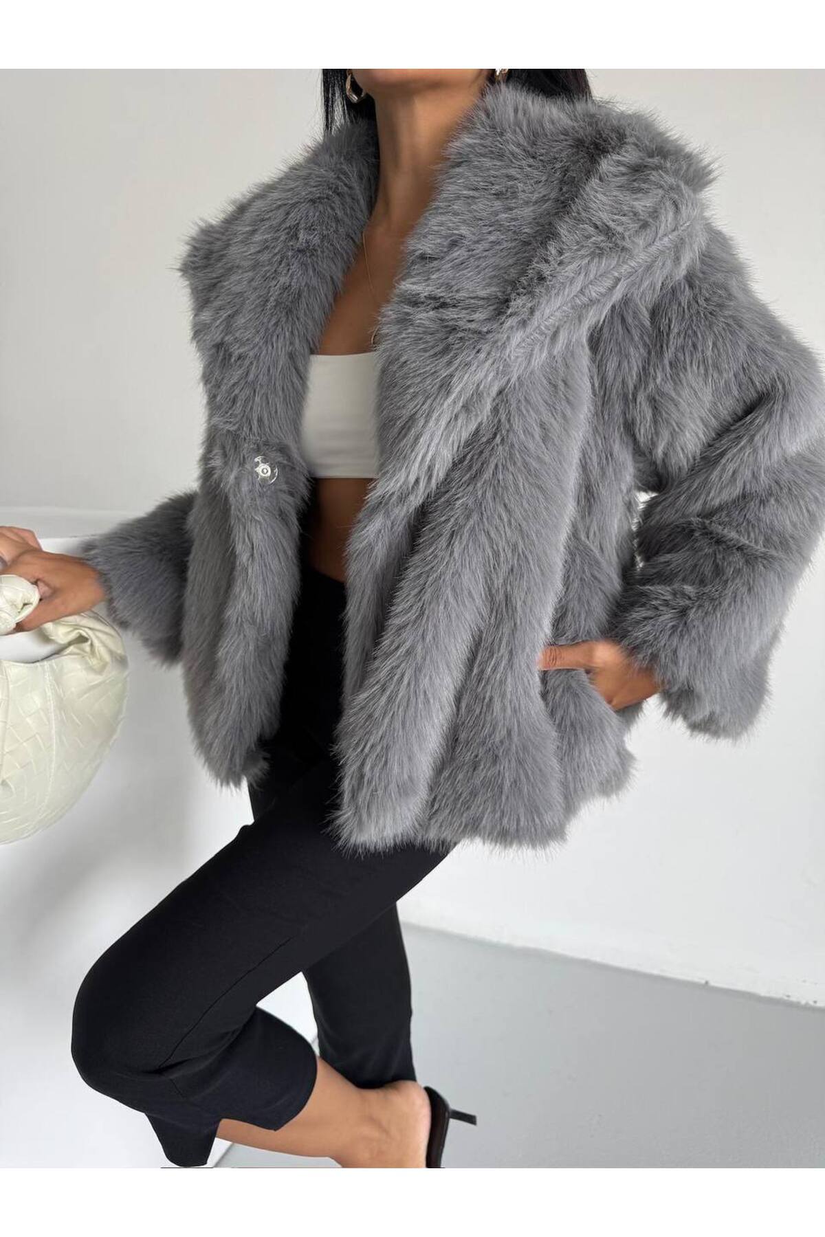 Kadın Geniş Yaka Cepli Kürk Ceket Kadın Geniş Yaka Cepli Kürk Ceket AHZ-37 L