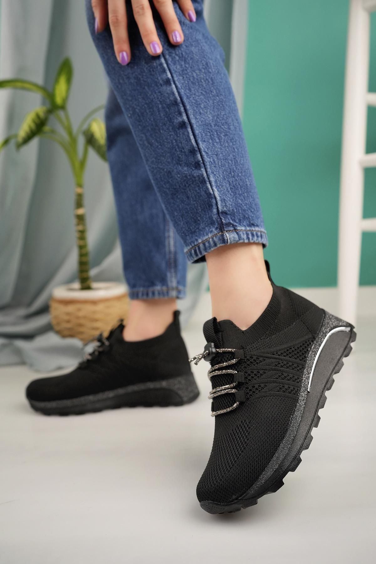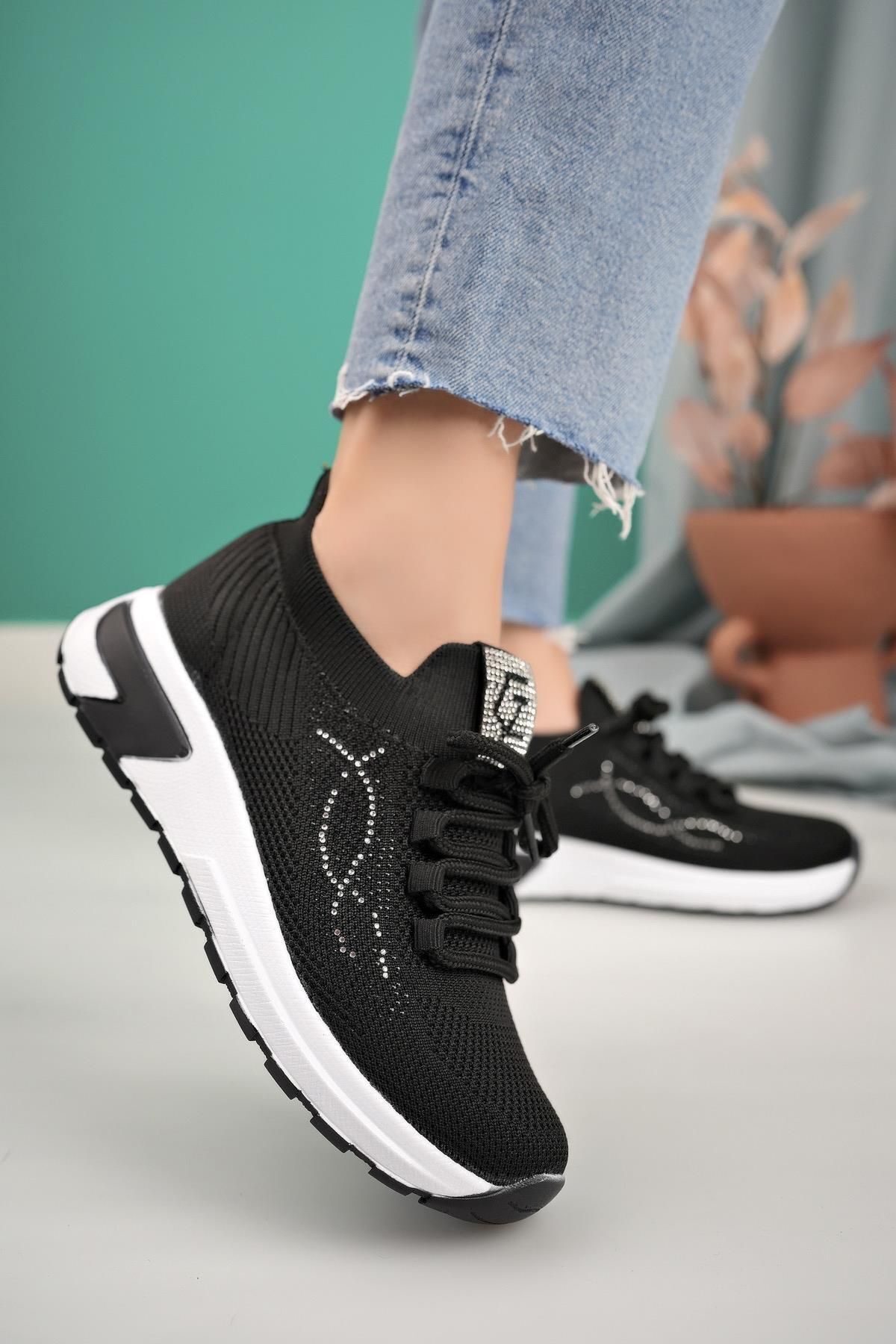 Kadın Nud Bağcıksız Taşlı Triko Kadın Sneaker Siyah Kadın Nud Bağcıksız Taşlı Triko Kadın Sneaker Siyah LUDBOOT00087 40