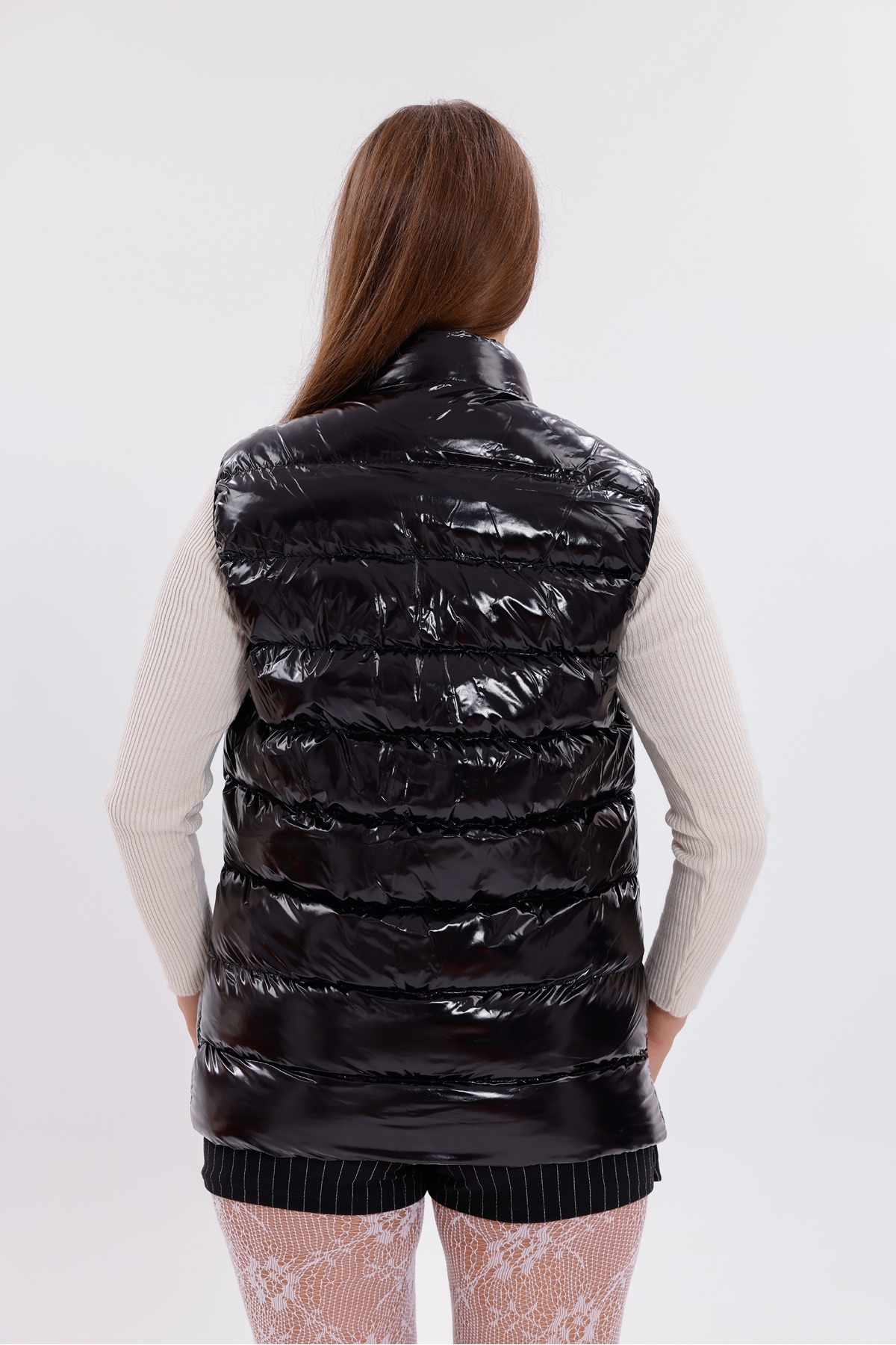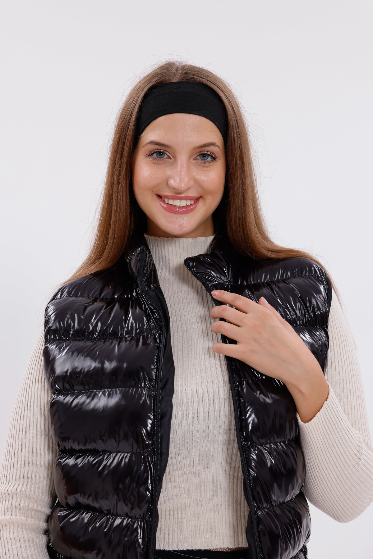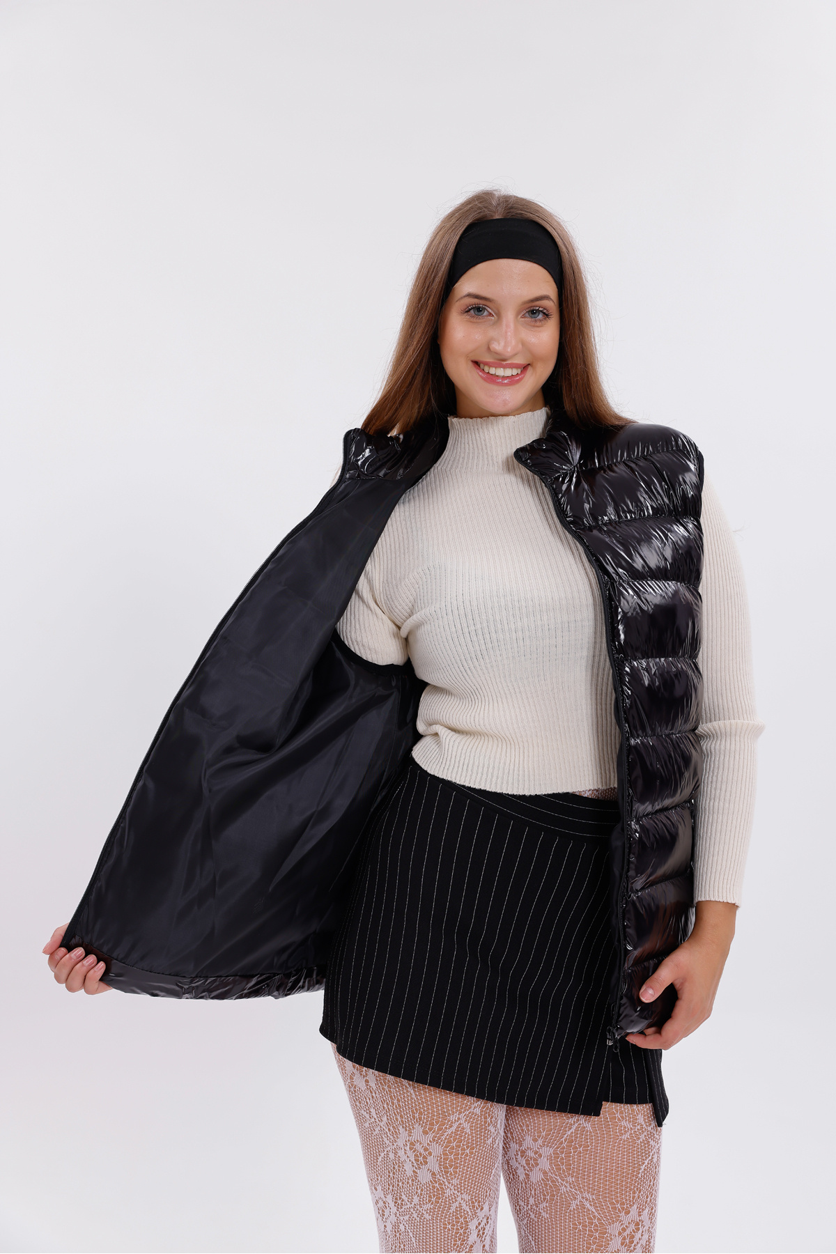 Kadın Siyah Parlak Kumaş Şişme Yelek Kadın Siyah Parlak Kumaş Şişme Yelek YELEK-02-K 2XL