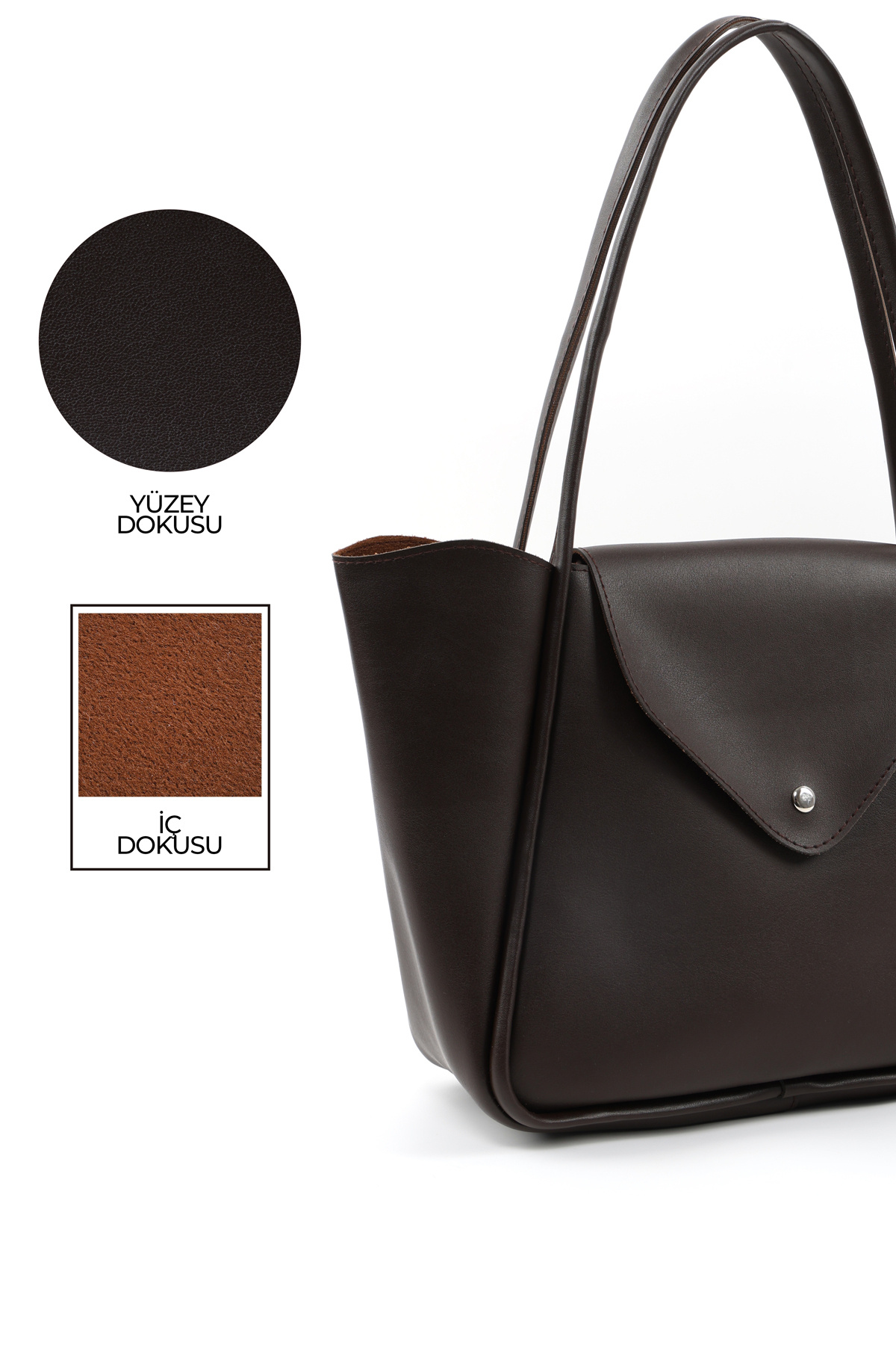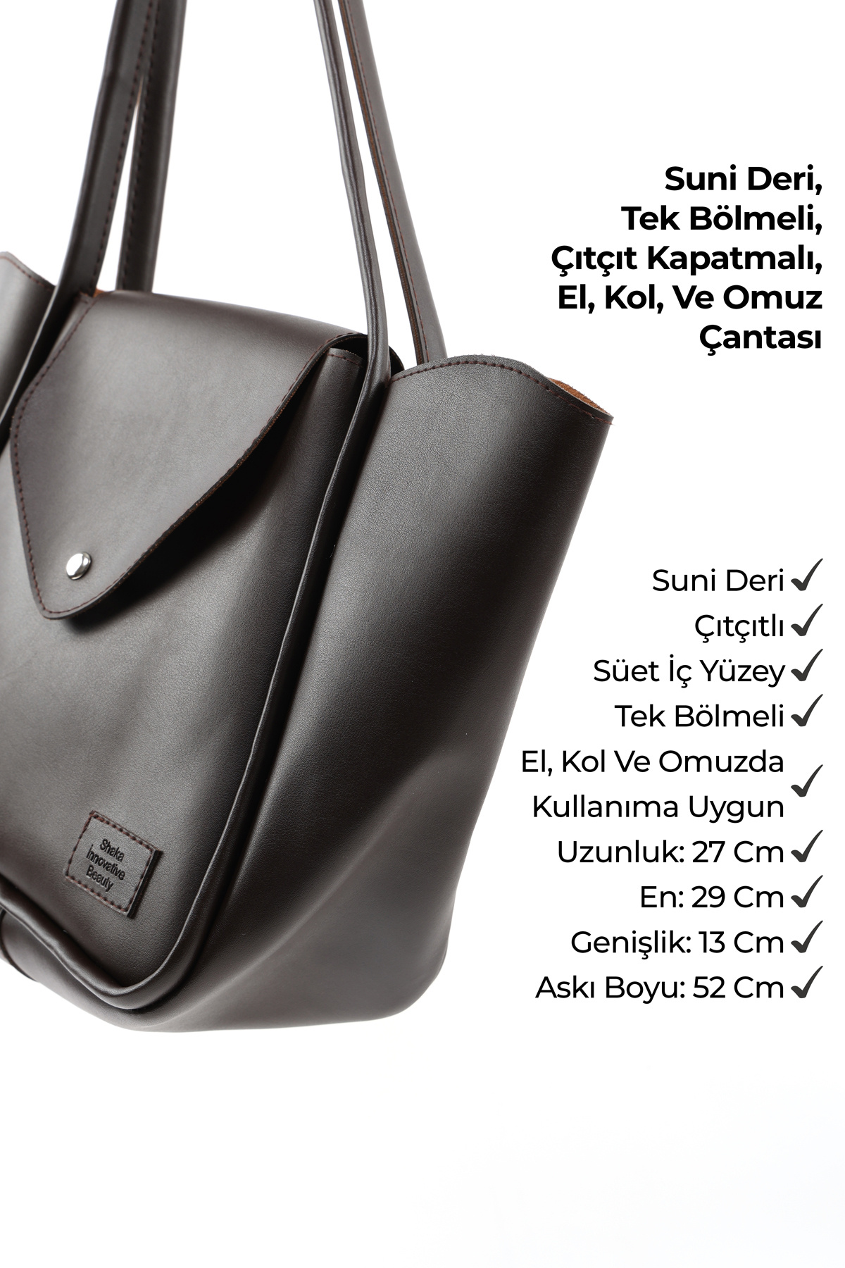 Kahve Rengi SHK249 Suni Deri, Çıtçıtlı Tek Bölmeli, Büyük Boy El, Kol ve Omuz Çantası Kahve Rengi SHK249 Suni Deri, Çıtçıtlı Tek Bölmeli, Büyük Boy El, Kol ve Omuz Çantası S225-00273 تک سایز