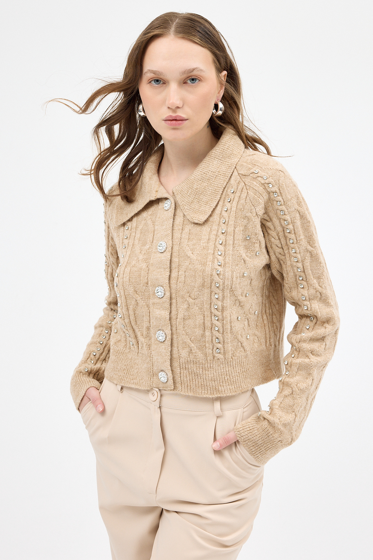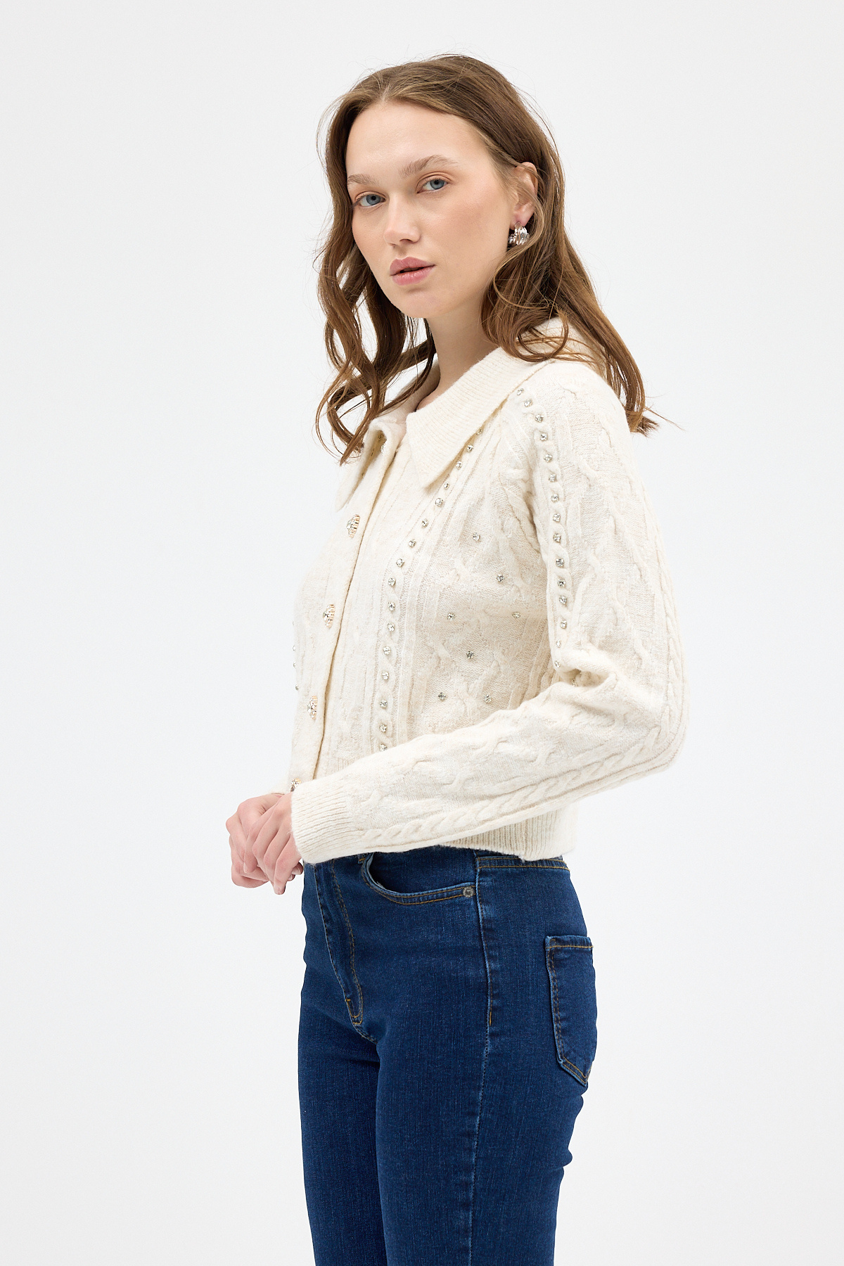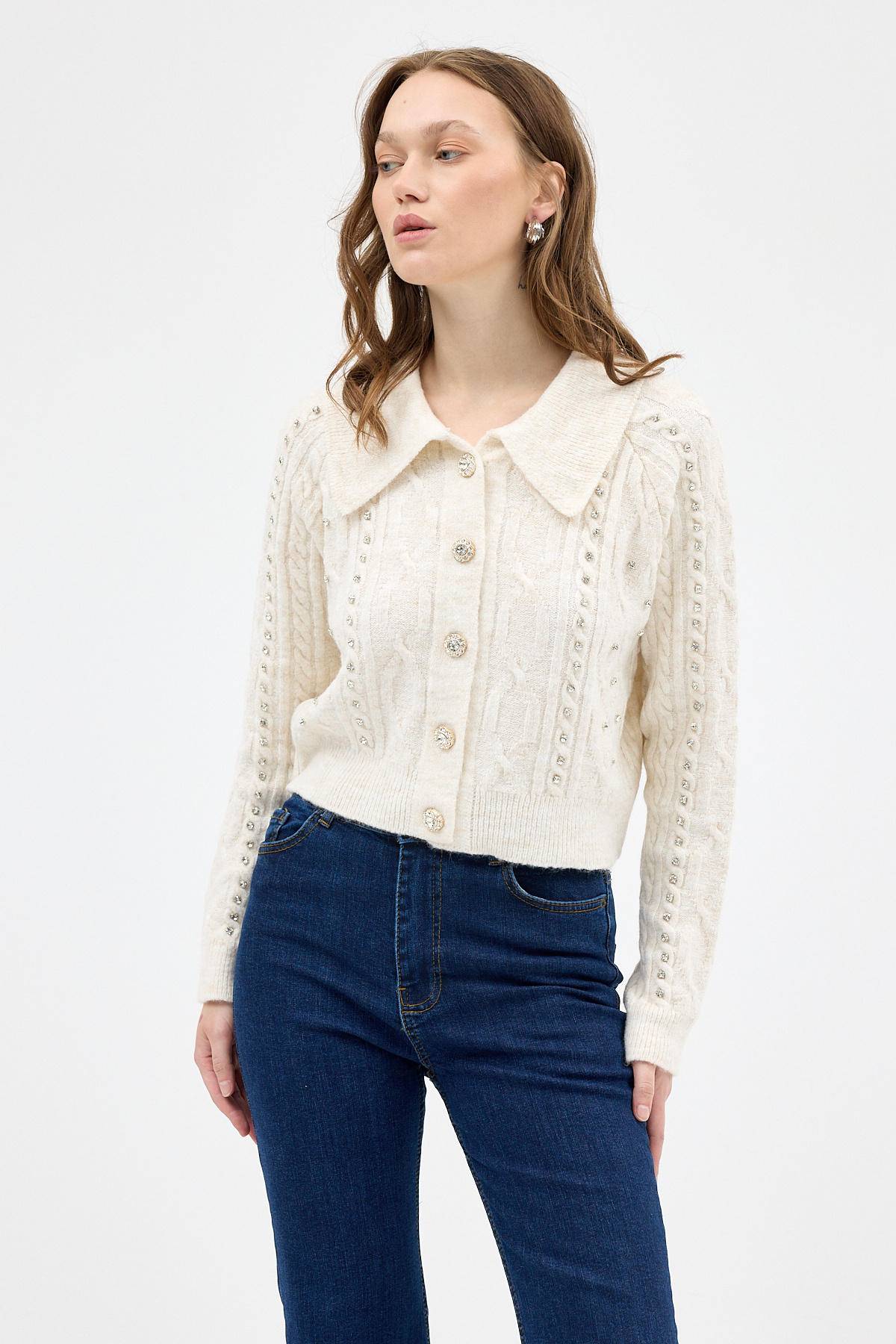 7265 Düğmeli Taşlı Hırka Natural 7265 Düğmeli Taşlı Hırka Natural 26K1123UST033 Standart