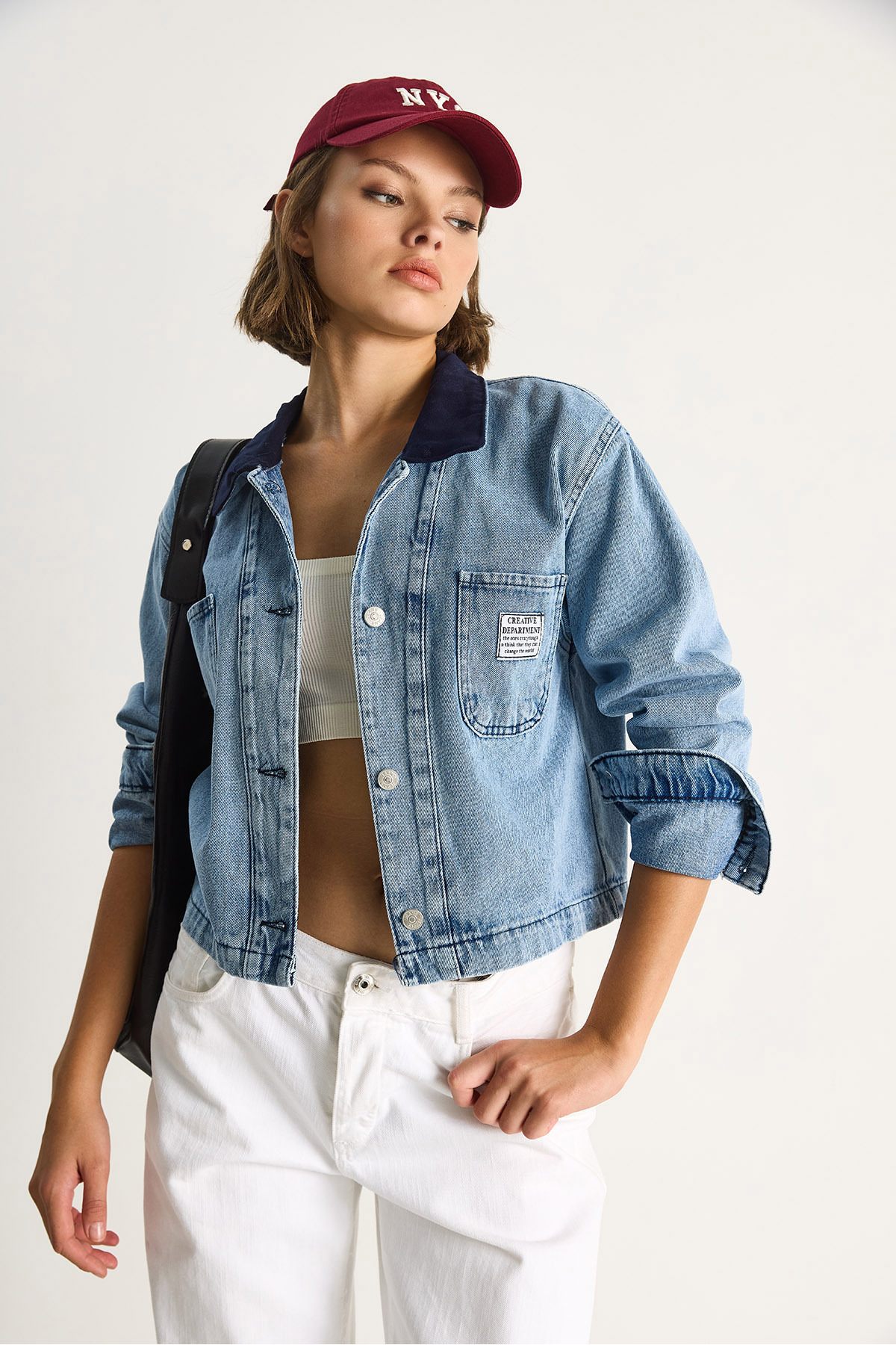 Kadın %100 Pamuk Slim Fit Kontrast Yakalı Mevsimlik Denim Ceket 2776 60281113 Kadın %100 Pamuk Slim Fit Kontrast Yakalı Mevsimlik Denim Ceket 2776 60281113 40