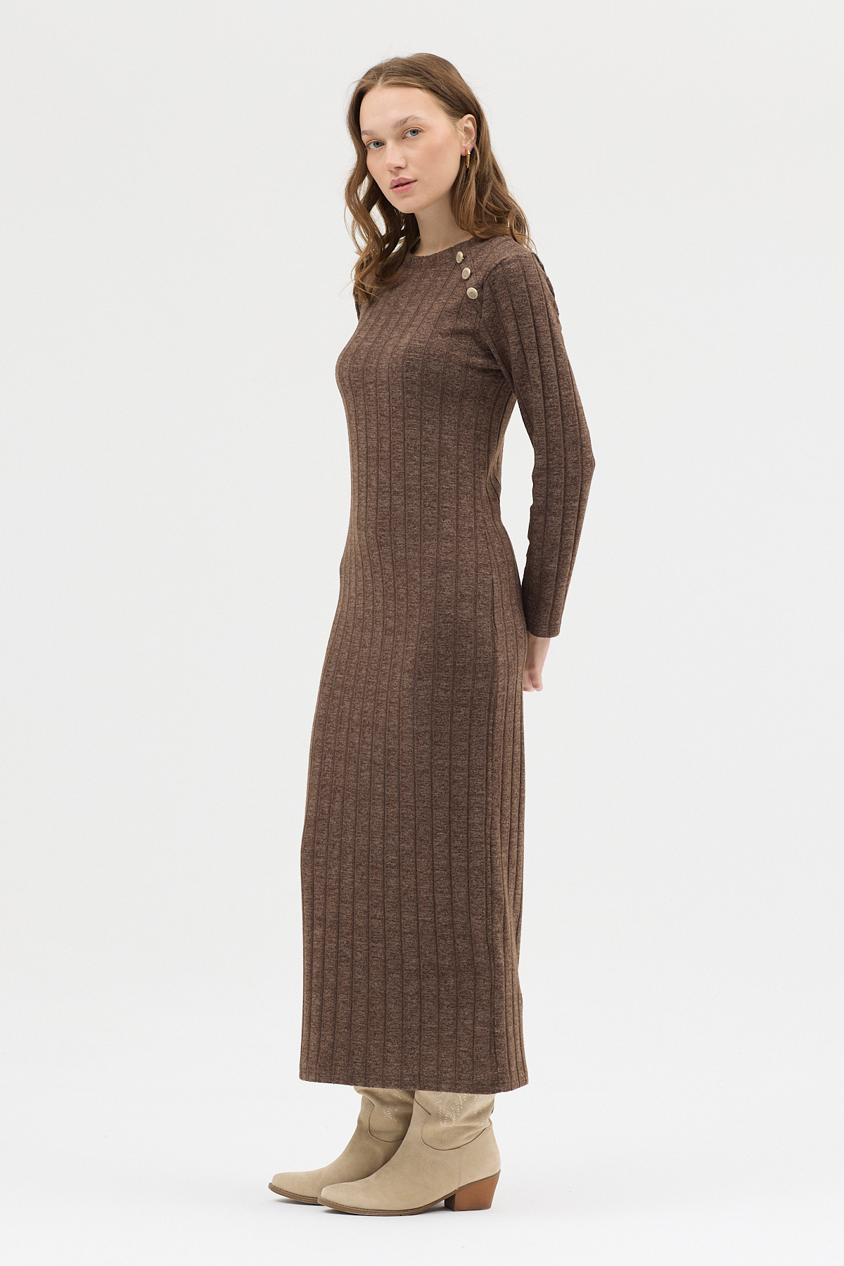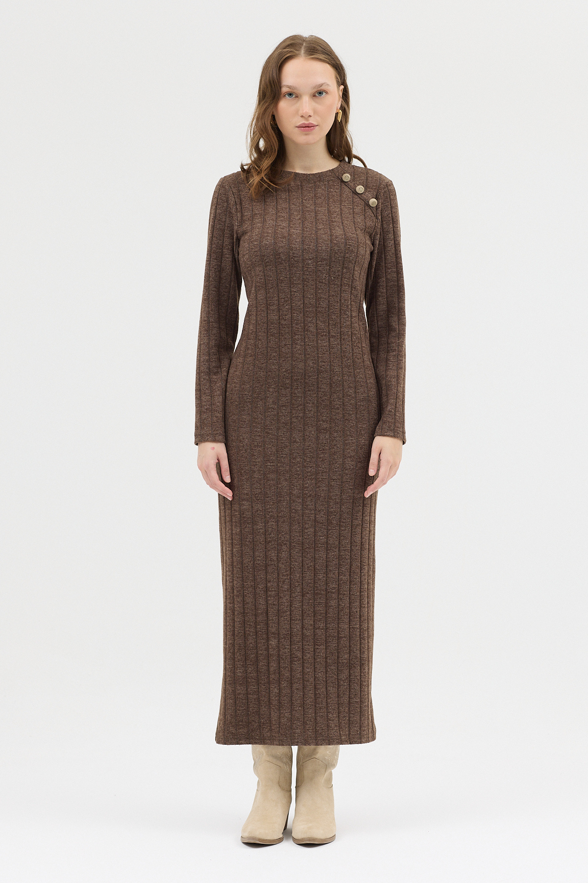 Kahve Omuz Düğme Detaylı Triko Uzun Elbise 8154A Kahve Omuz Düğme Detaylı Triko Uzun Elbise 8154A 26K1123DIS007 42