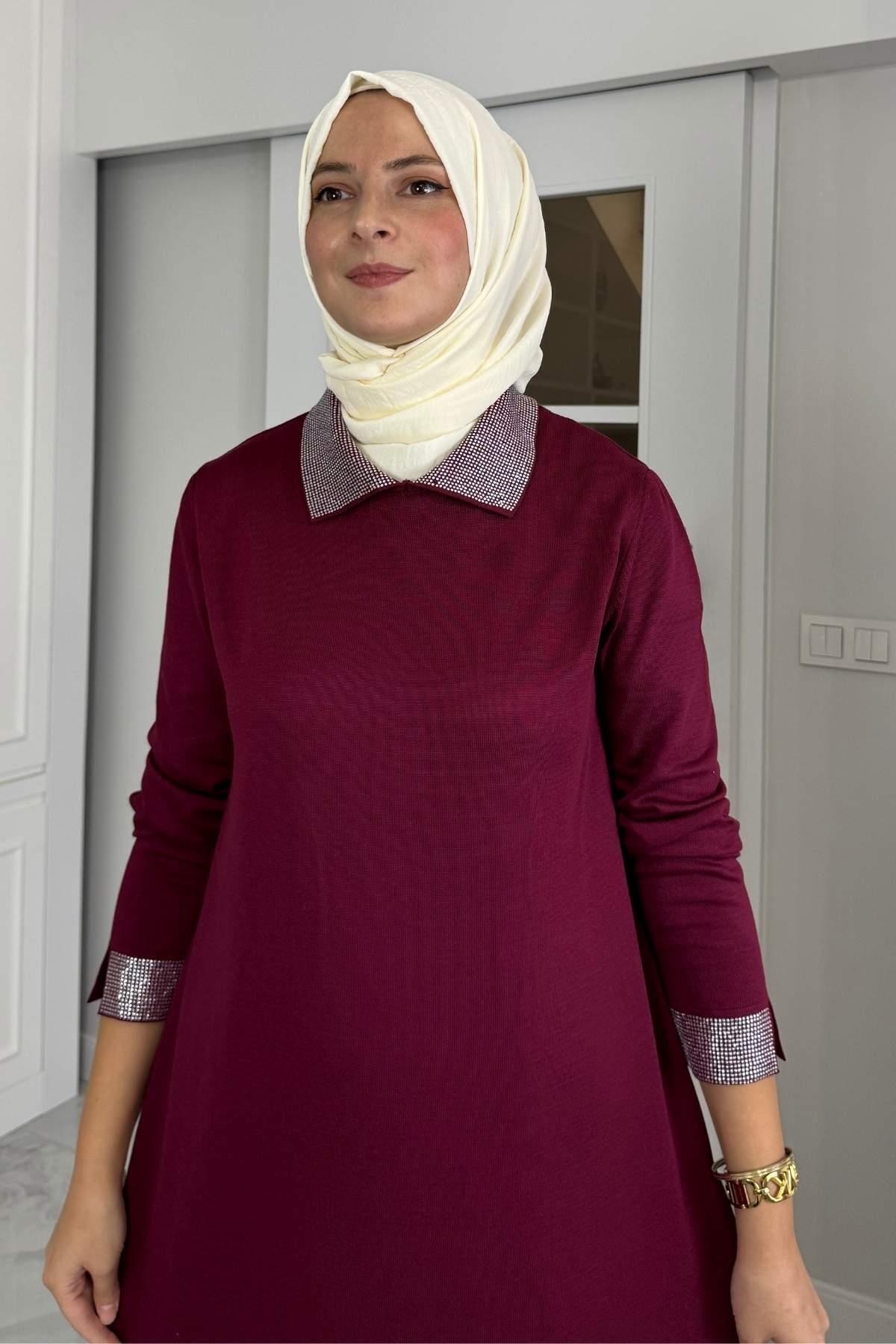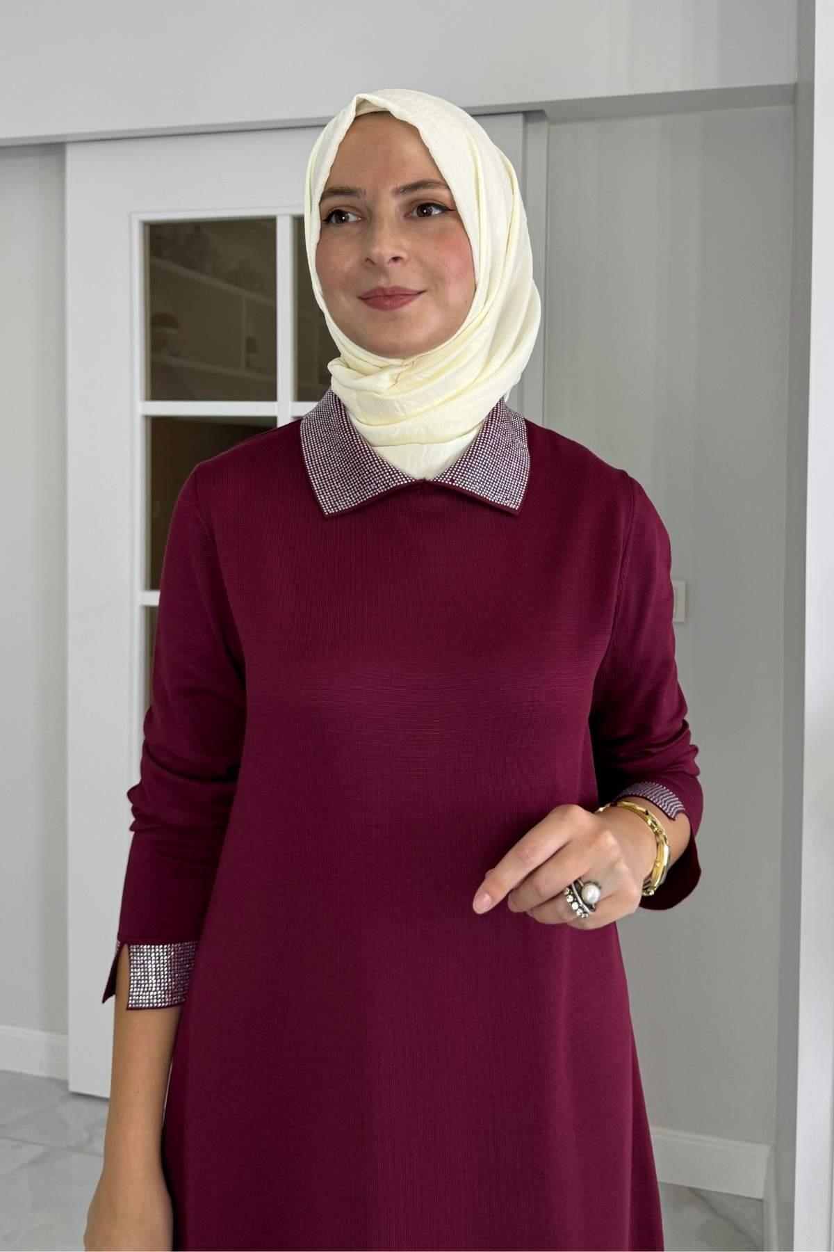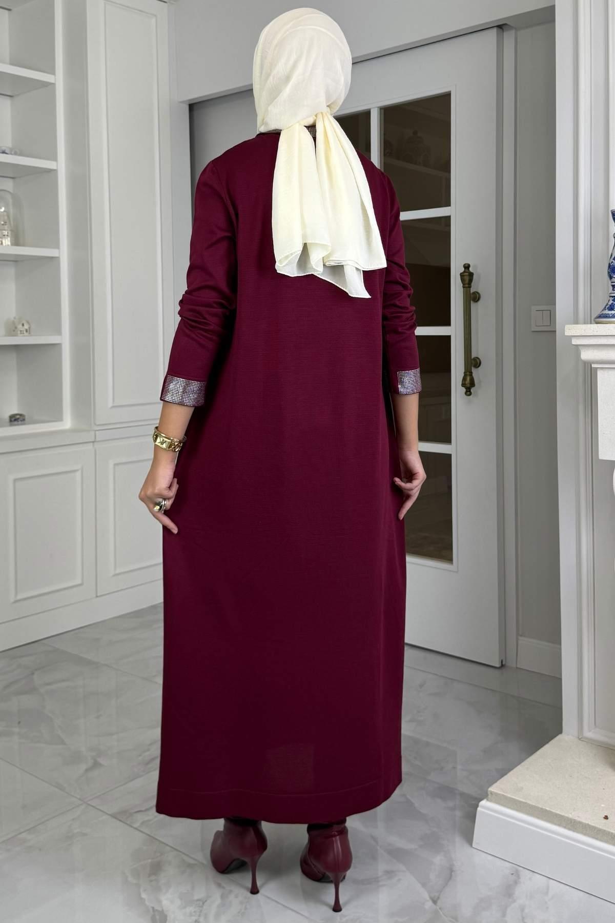 Pera Taşlı Triko Elbise Bordo Pera Taşlı Triko Elbise Bordo TX745529EB1356 تک سایز