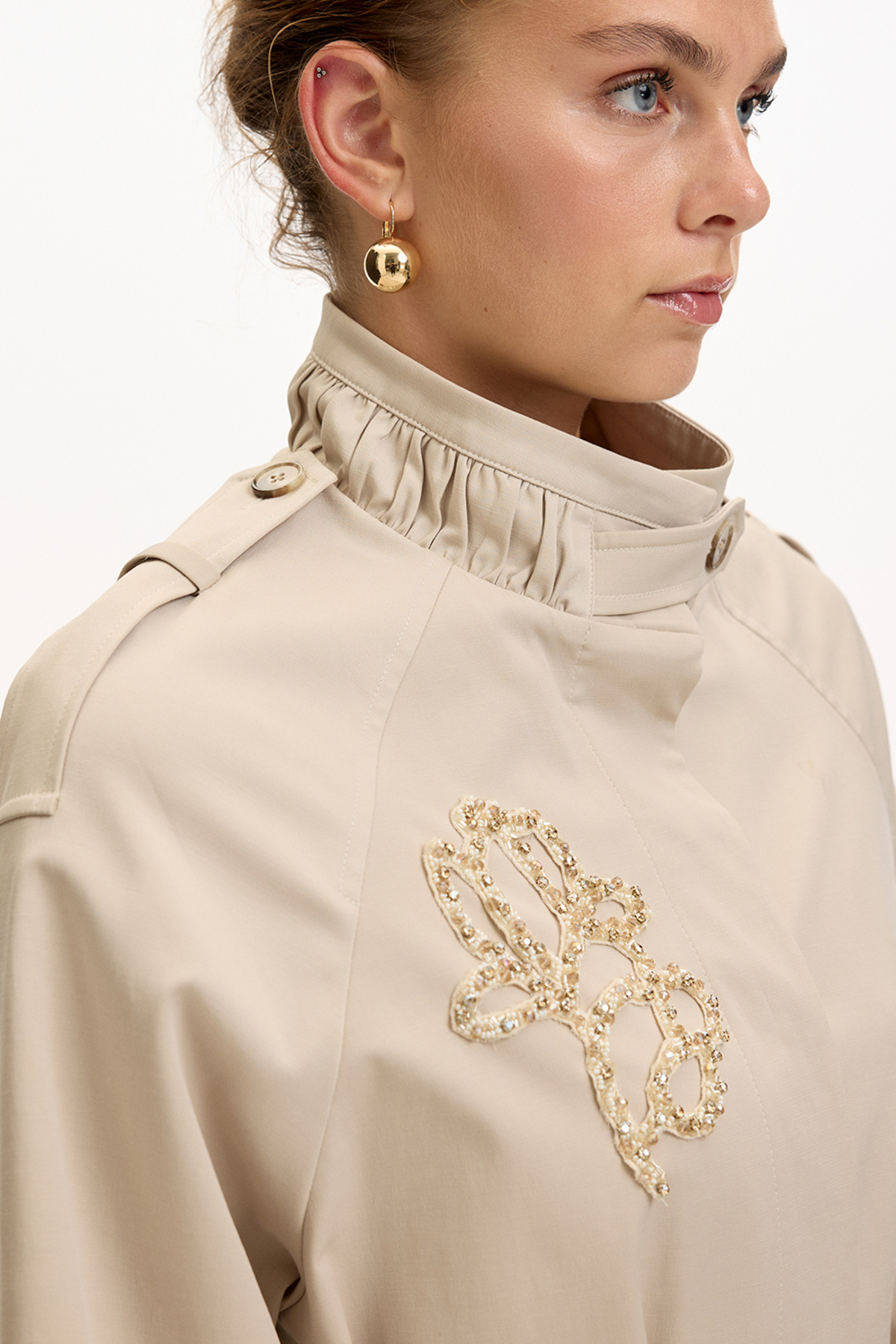 Taş İşlemeli Dik Yaka Kemerli Regular Trençkot Taş İşlemeli Dik Yaka Kemerli Regular Trençkot E25K05103002 2
