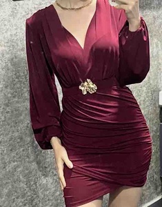 Kruvaze Önü Tokalı Elbise - BORDO Kruvaze Önü Tokalı Elbise - BORDO P18196S5614 L