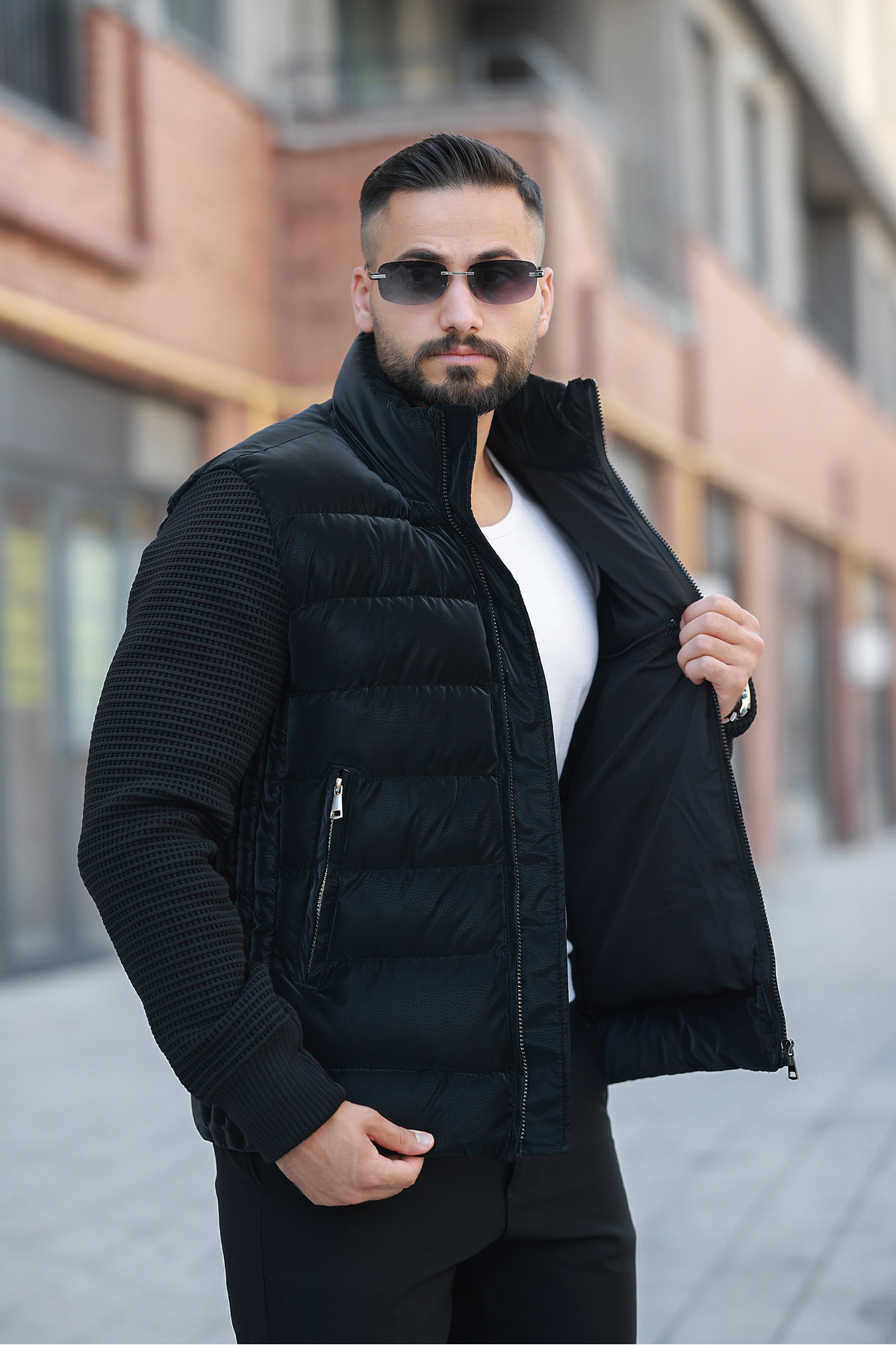 Erkek Kol Örme Şişme Mont Erkek Kol Örme Şişme Mont mov2001 2XL