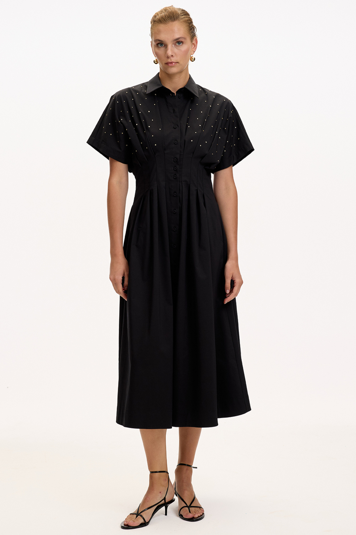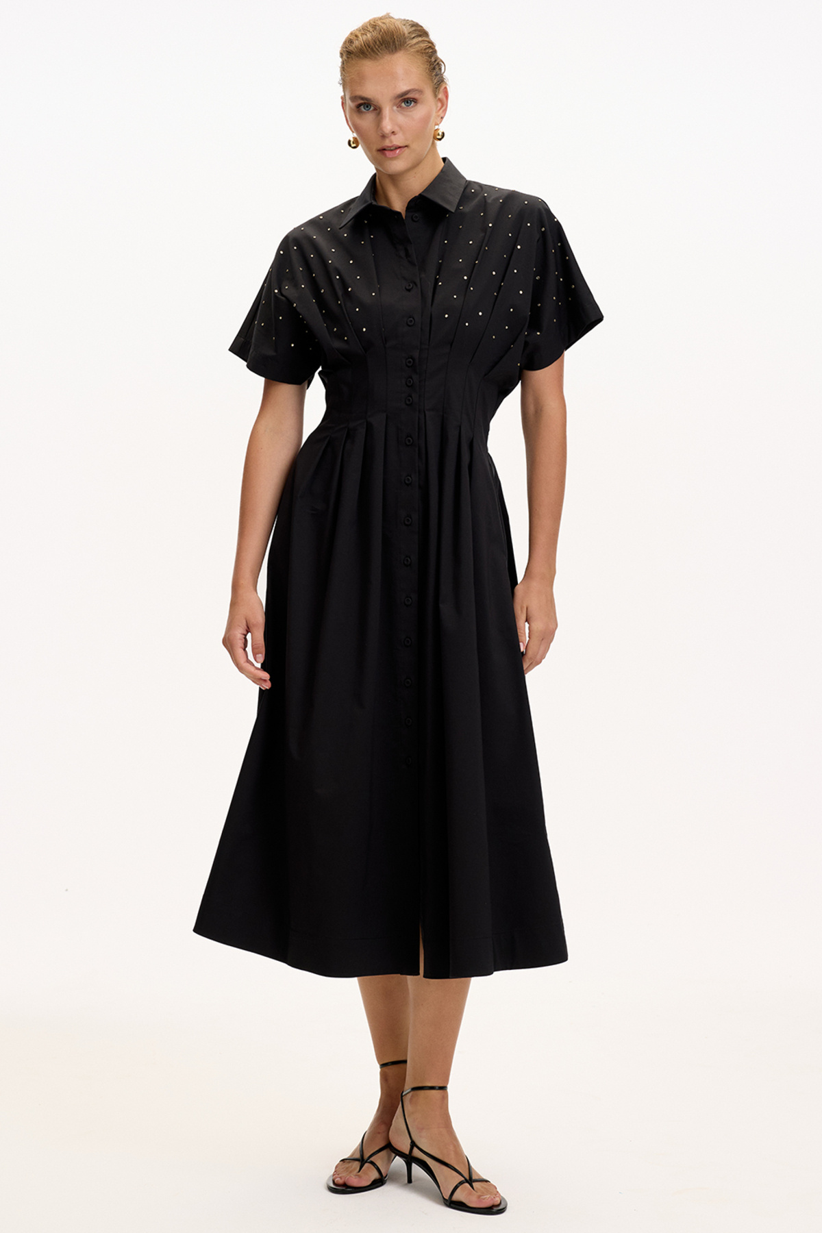 Desenli Bele Oturan Düşük Omuzlu Taş Baskılı Regular Midi Elbise Desenli Bele Oturan Düşük Omuzlu Taş Baskılı Regular Midi Elbise E25K05118027 44