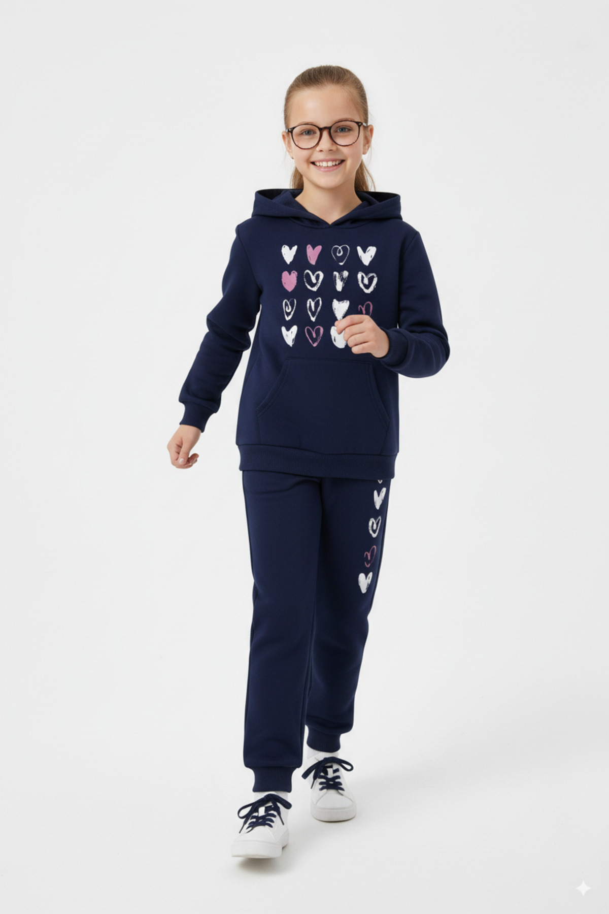 KANGURU CEPLİ KAPÜŞONLU KALP BASKILI KIZ ÇOCUK EŞOFMAN TAKIMI KANGURU CEPLİ KAPÜŞONLU KALP BASKILI KIZ ÇOCUK EŞOFMAN TAKIMI PK01367 13 Yaş