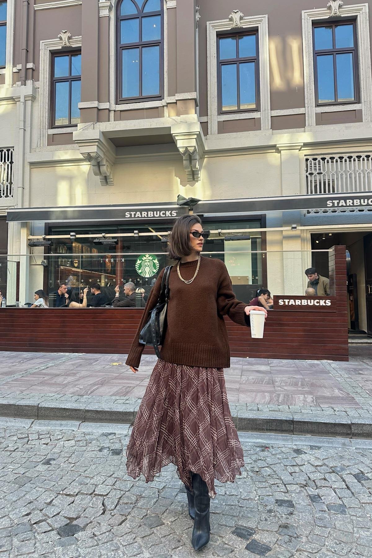 Desenli Kırışık Efektli Midi Şifon Etek LNS0082 MÜRDÜM Desenli Kırışık Efektli Midi Şifon Etek LNS0082 MÜRDÜM 40