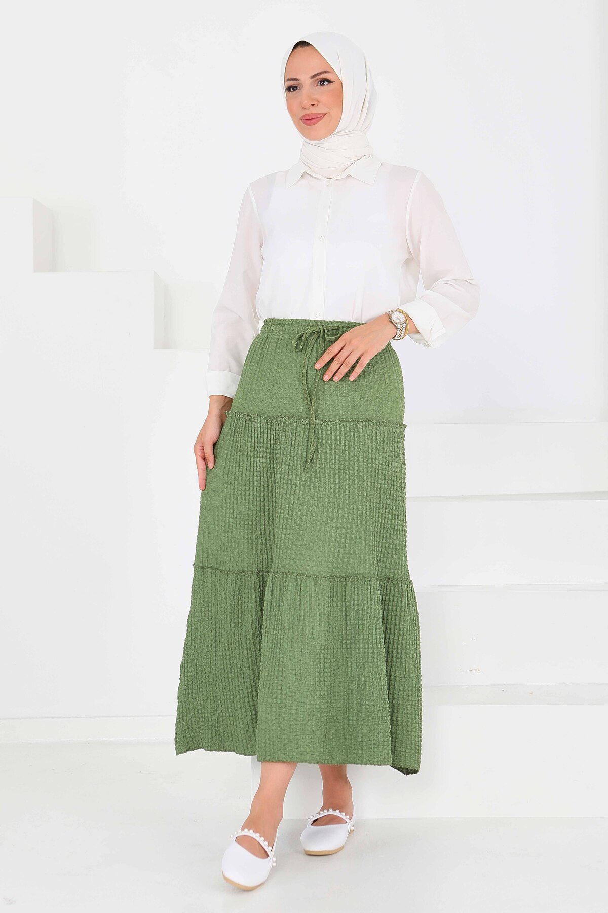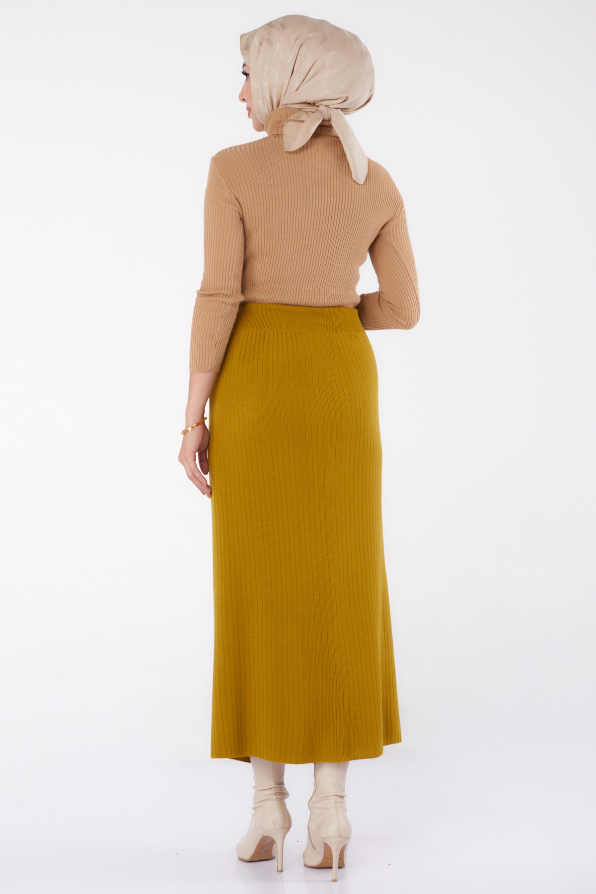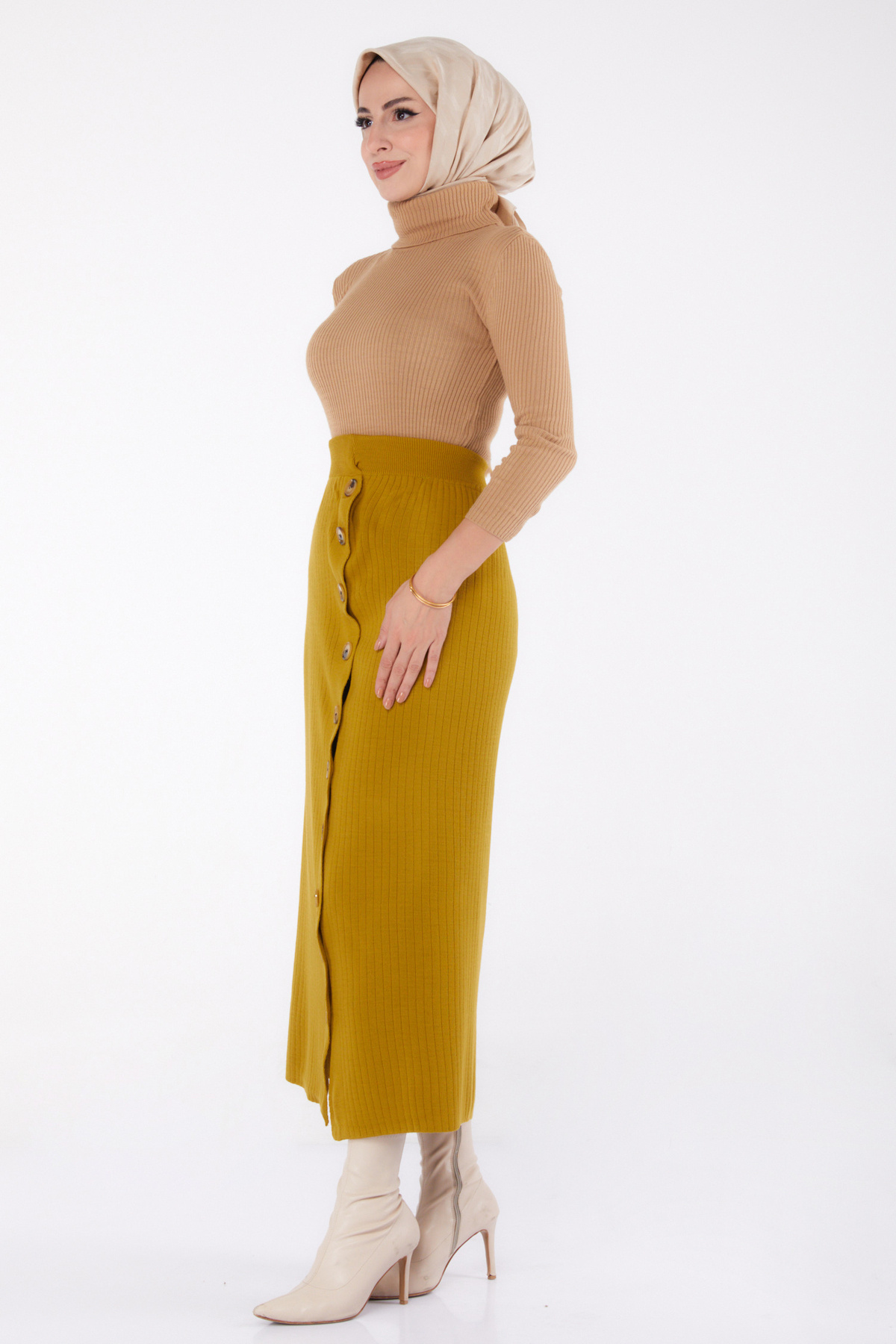 Düğmeli Triko Etek Yağ Yeşili - 27668 Düğmeli Triko Etek Yağ Yeşili - 27668 Standart