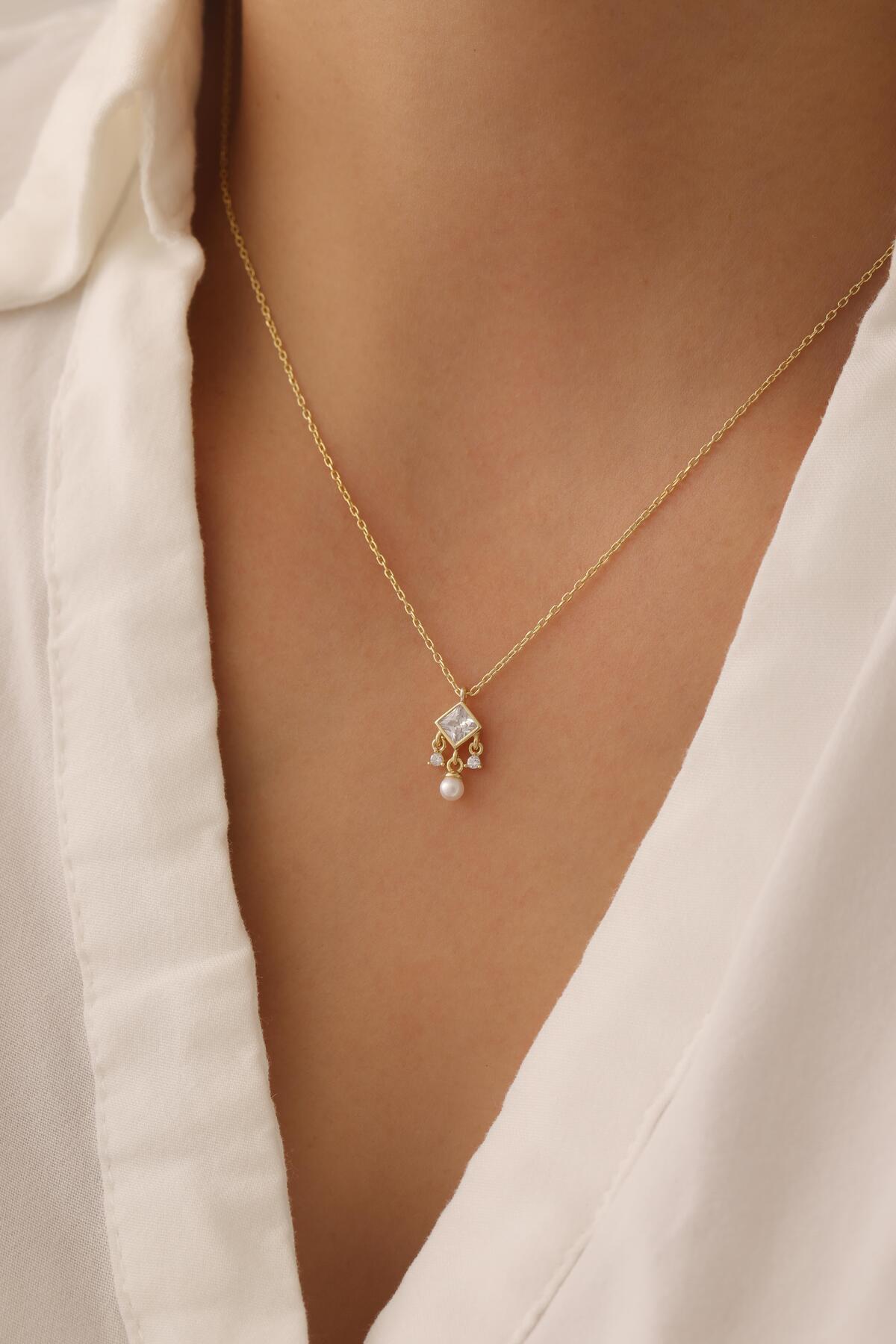 Yarısı İncili Zincirli Zirkon Taşlı Yelpaze Kolye - 925 Ayar Gümüş Yarısı İncili Zincirli Zirkon Taşlı Yelpaze Kolye - 925 Ayar Gümüş KLY60037 تک سایز
