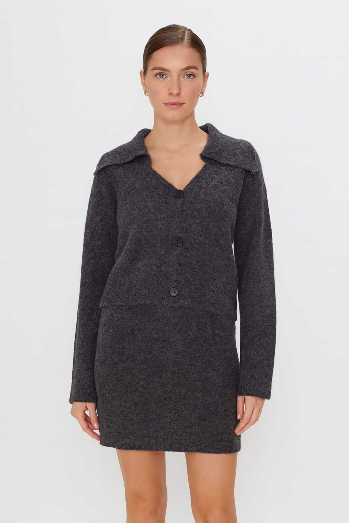 Kadın Triko Takım Geniş Polo Yaka Detaylı Düğmeli Ceket Etek Alt Üst Triko Takım Kadın Triko Takım Geniş Polo Yaka Detaylı Düğmeli Ceket Etek Alt Üst Triko Takım 00182 Standart