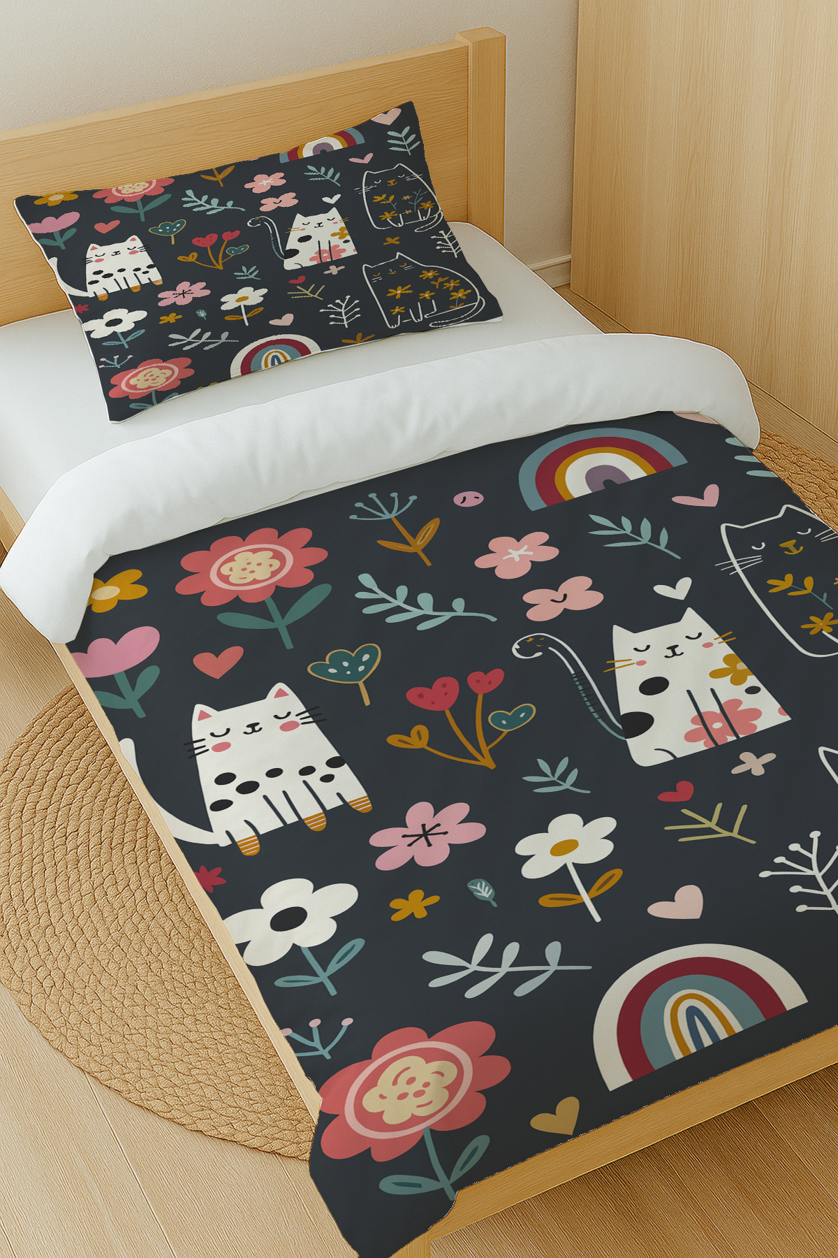 Minik Kedili Desenli Pamuk Saten Tek Kişilik Nevresim Takımı 160x220cm Minik Kedili Desenli Pamuk Saten Tek Kişilik Nevresim Takımı 160x220cm 3delsehalkdi تک سایز