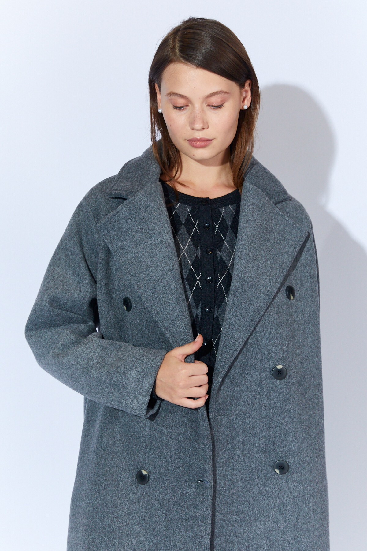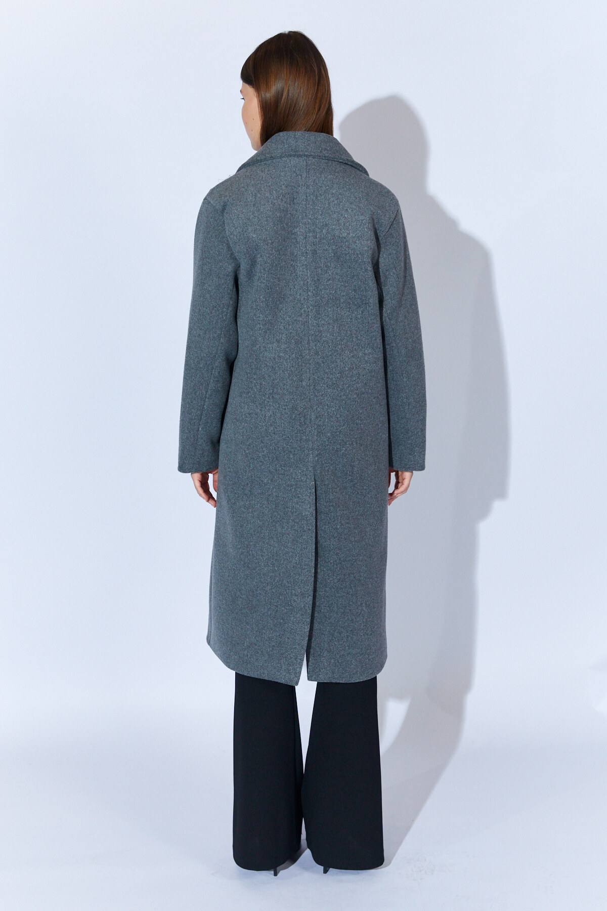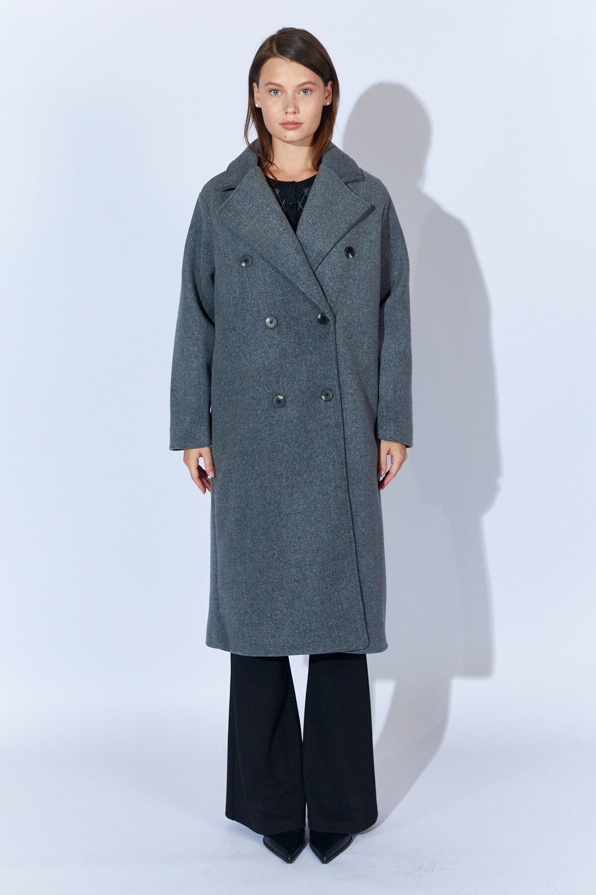 Yakalı Kruvaze Kadın Kaban - Gri | MKW355558-01 Yakalı Kruvaze Kadın Kaban - Gri | MKW355558-01 2X