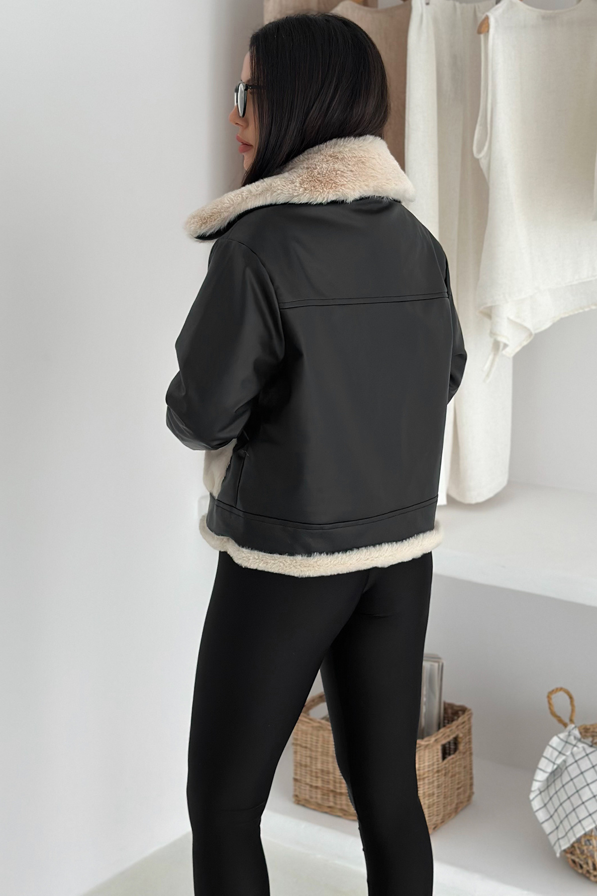 Kadın Peluş Astarlı Deri Ceket – Cepleri Peluş Detaylı & Kontrast Yakalı Kadın Peluş Astarlı Deri Ceket – Cepleri Peluş Detaylı & Kontrast Yakalı 2278-dericeket L