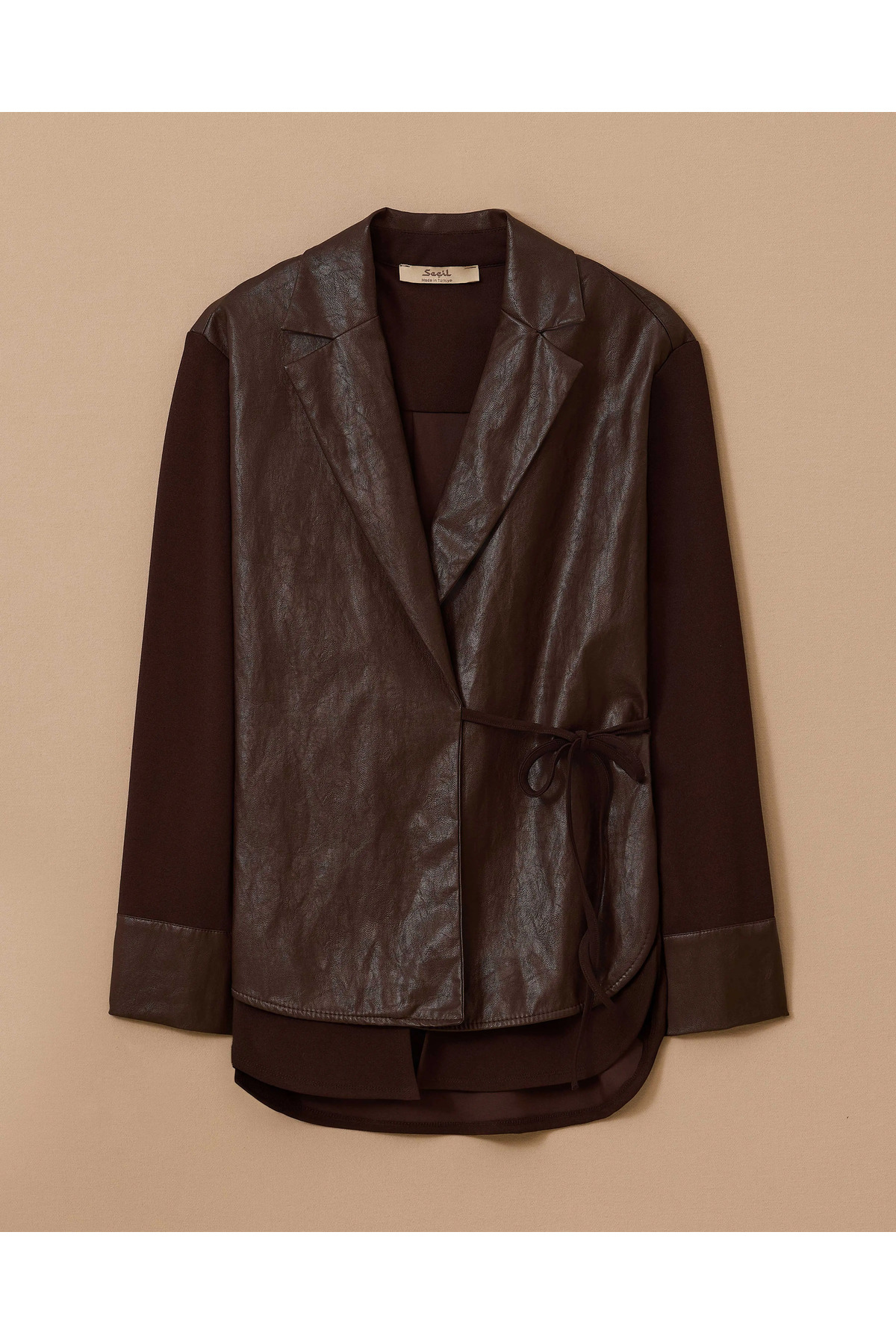 Bağlamalı Suni Deri Detaylı Kruvaze Gömlek Bağlamalı Suni Deri Detaylı Kruvaze Gömlek 10002521510017 42