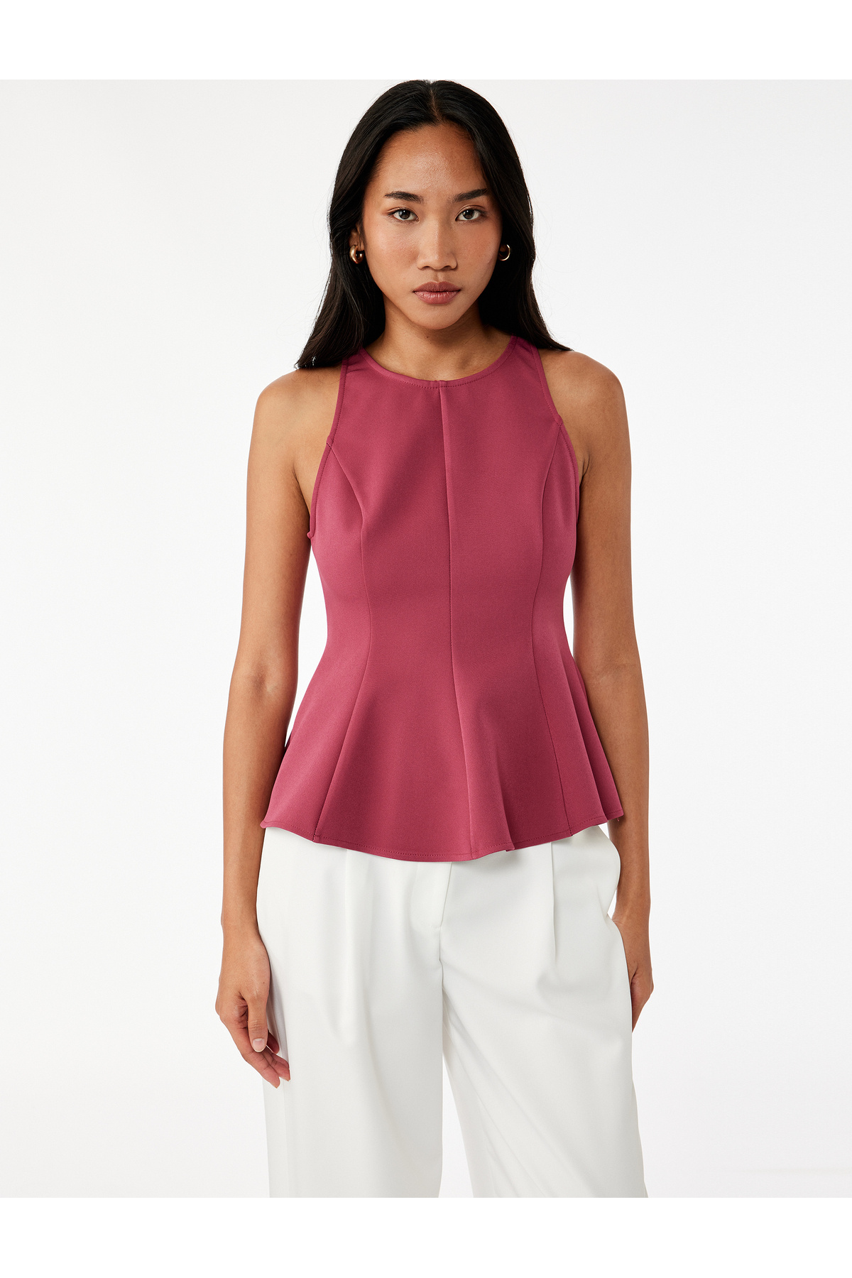 Krep Scuba Kumaş Slim Fit Kolsuz Kayık Yaka Fiyonk Detaylı Peplum Bluz Krep Scuba Kumaş Slim Fit Kolsuz Kayık Yaka Fiyonk Detaylı Peplum Bluz 6WAK10138EK 2XL