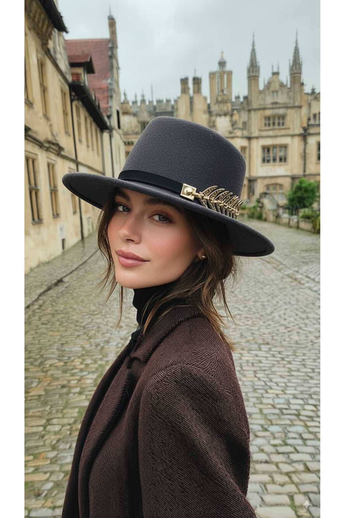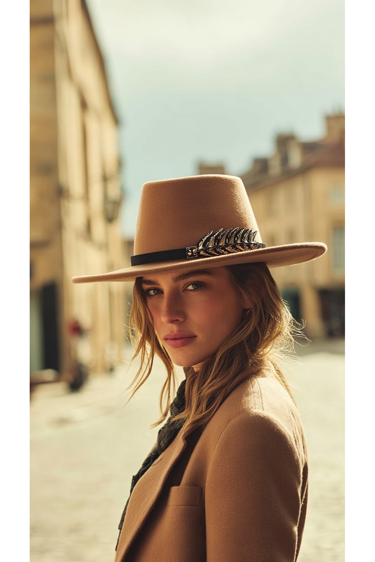 Retro Tarzı Premium Kadın Özel Tasarım Fötr Şapka Retro Tarzı Premium Kadın Özel Tasarım Fötr Şapka GRK1073 تک سایز
