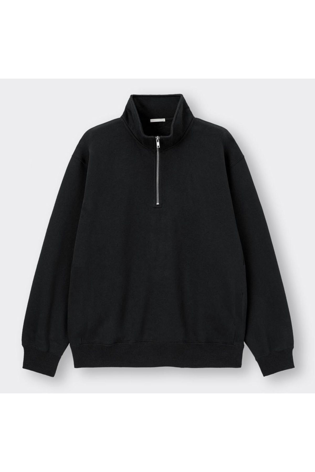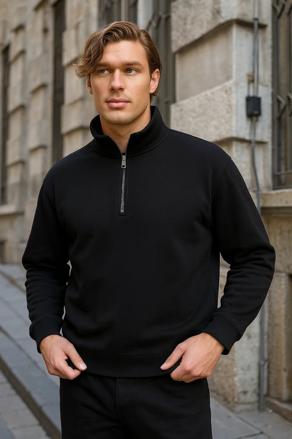 Erkek Yarım Fermuarlı Bol Siyah Sweatshirt Erkek Yarım Fermuarlı Bol Siyah Sweatshirt Ayna-SWT.0030 XL