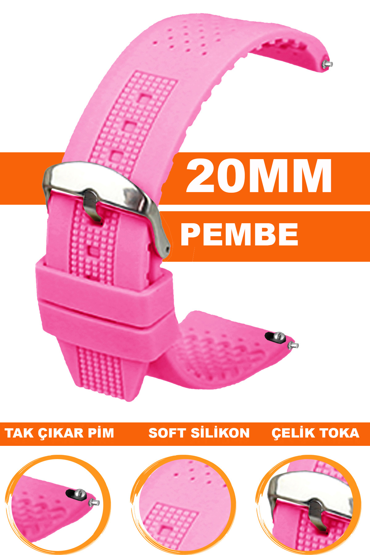 20mm Saat Uyumlu Silikon Saat Kordonu Kayışı A1620MM