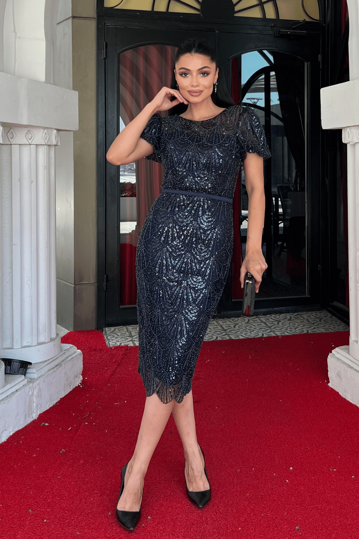 Kadın Gri Boncuklu Midi Abiye Elbise Kadın Gri Boncuklu Midi Abiye Elbise 25Y810152 50