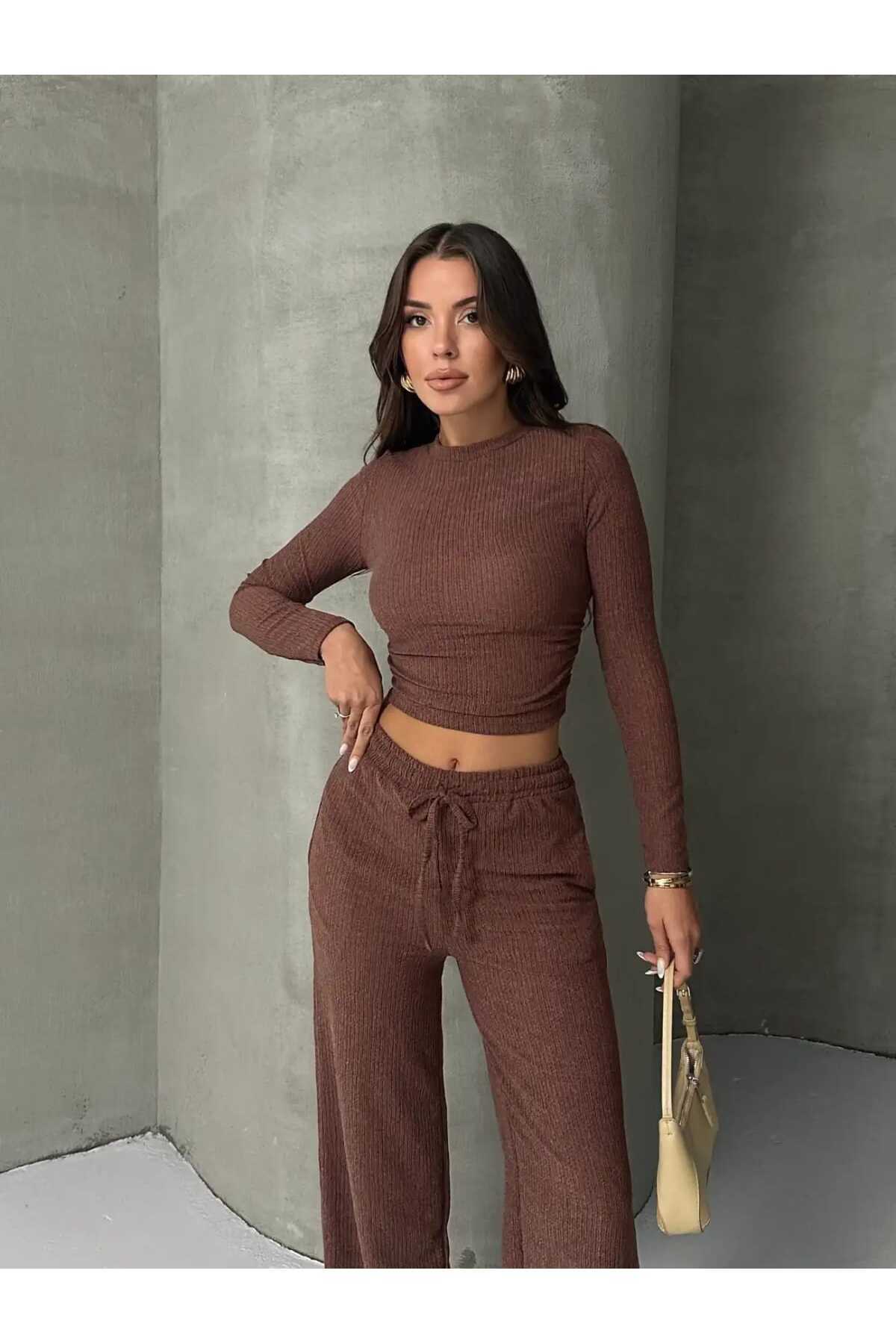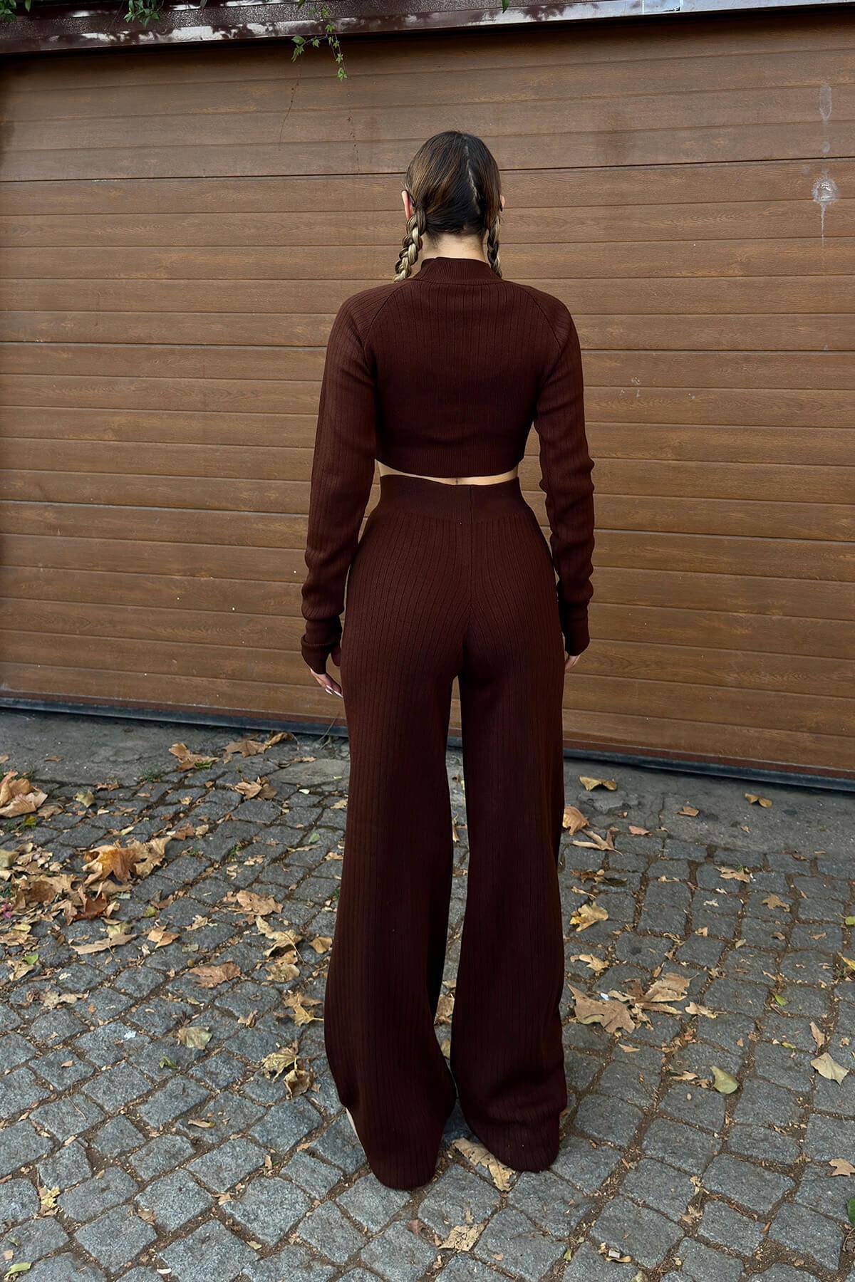 Kahverengi Yarım Balıkçı Örgü Crop Kazak Pantolon Triko Alt-Üst Takım Kahverengi Yarım Balıkçı Örgü Crop Kazak Pantolon Triko Alt-Üst Takım 44601 Standart